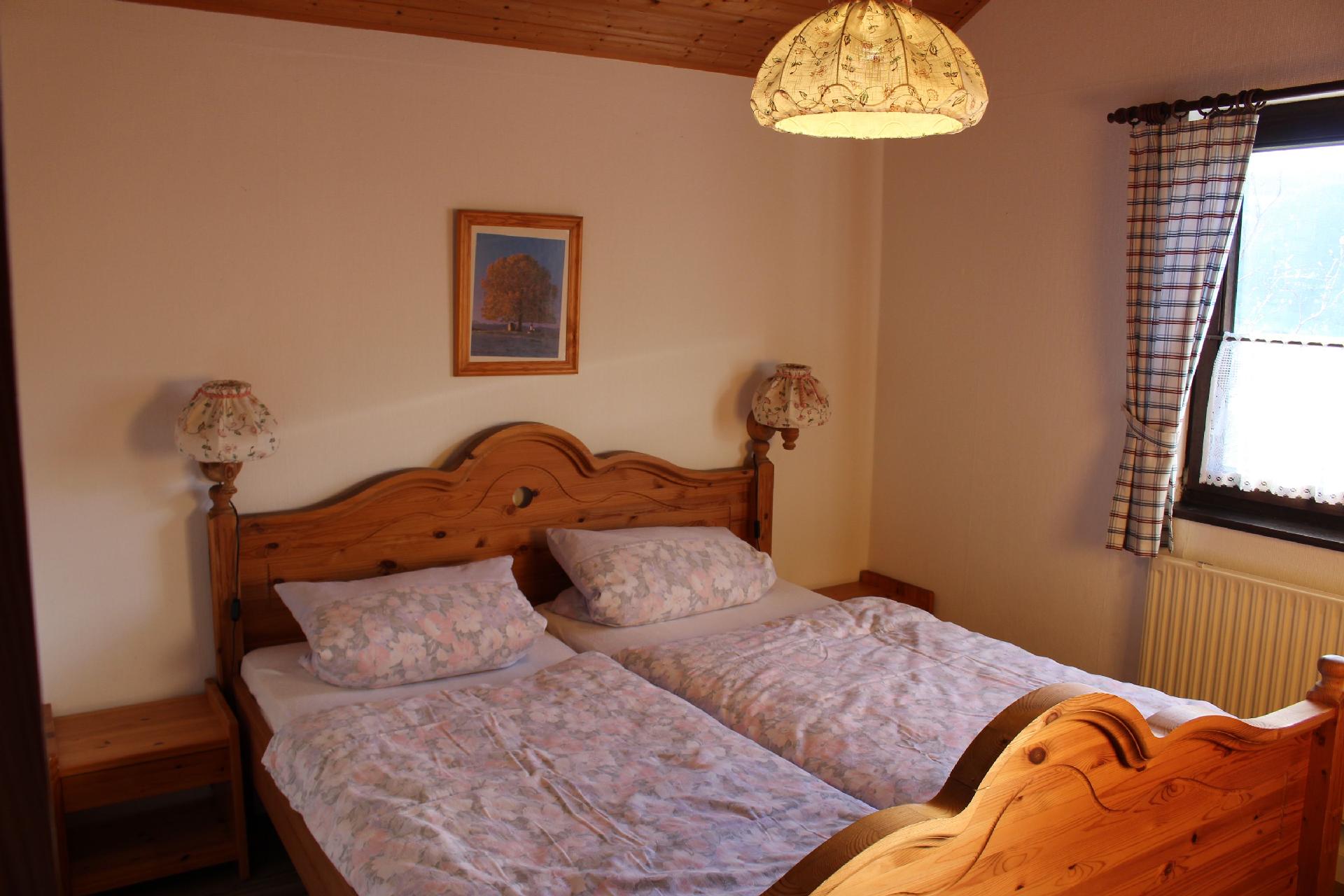 Unser Haus bietet Platz für bis zu 6 Personen (6 Schlafplätze) und ist in Hanglage gebaut. Über den auf Straßenhöhe gelegenen Eingang gelangt man in die 2 zwei Schlafräume,ausgestattet mit jeweils einem Doppelbett und jeweils mit einem geräumigen Kleiderschrank. Auf dieser Etage liegt auch das Tageslicht-Bad mit WC, Wanne und Waschbecken. Dort liegen ein Fön und Vergrößerungsspiegel für Sie bereit. Weitere zwei Betten gibt es im ausgebauten Spitzboden, den man vom Flur aus über eine Raumspartreppe erreicht. Für Erwachsene ist die Stehhöhe nur in Giebelhöhe gegeben, weshalb sich diese Schlafgelegenheiten vorallem für Kinder und Jugendliche eignet. Für Kinder unter 5 Jahren ist die Nutzung der Raumspartreppe nicht geeignet.