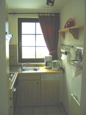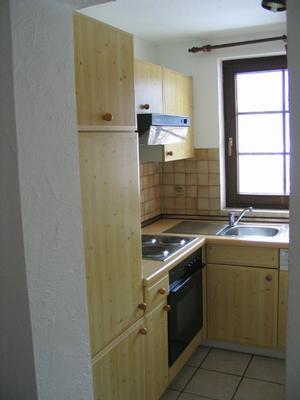 Über eine Treppe im Flur gelangt man ins UG mit einem hellen Wohnraum mit gemütlicher Essecke (Eckbank) im allgäuer Stil, Fernsehsessel und einem gemütlich Kachelofen sowie Ausgang zur herrlichen Südterrasse und Garten. Das Wohn-/Eßzimmer ist ausgestattet mit Kabel-Farb-TV inkl. Radio und Internet-Anschluß. Die Küche mit 4-Platten-Herd / Backofen, Kühlschrank mit Gefrierfach erreichen Sie direkt aus dem Wohn-/Essbereich. Natürlich ist sämtliches Geschirr vorhanden sowie div. elektr. Geräte wie Wasser- u. Eierkocher, Toaster.