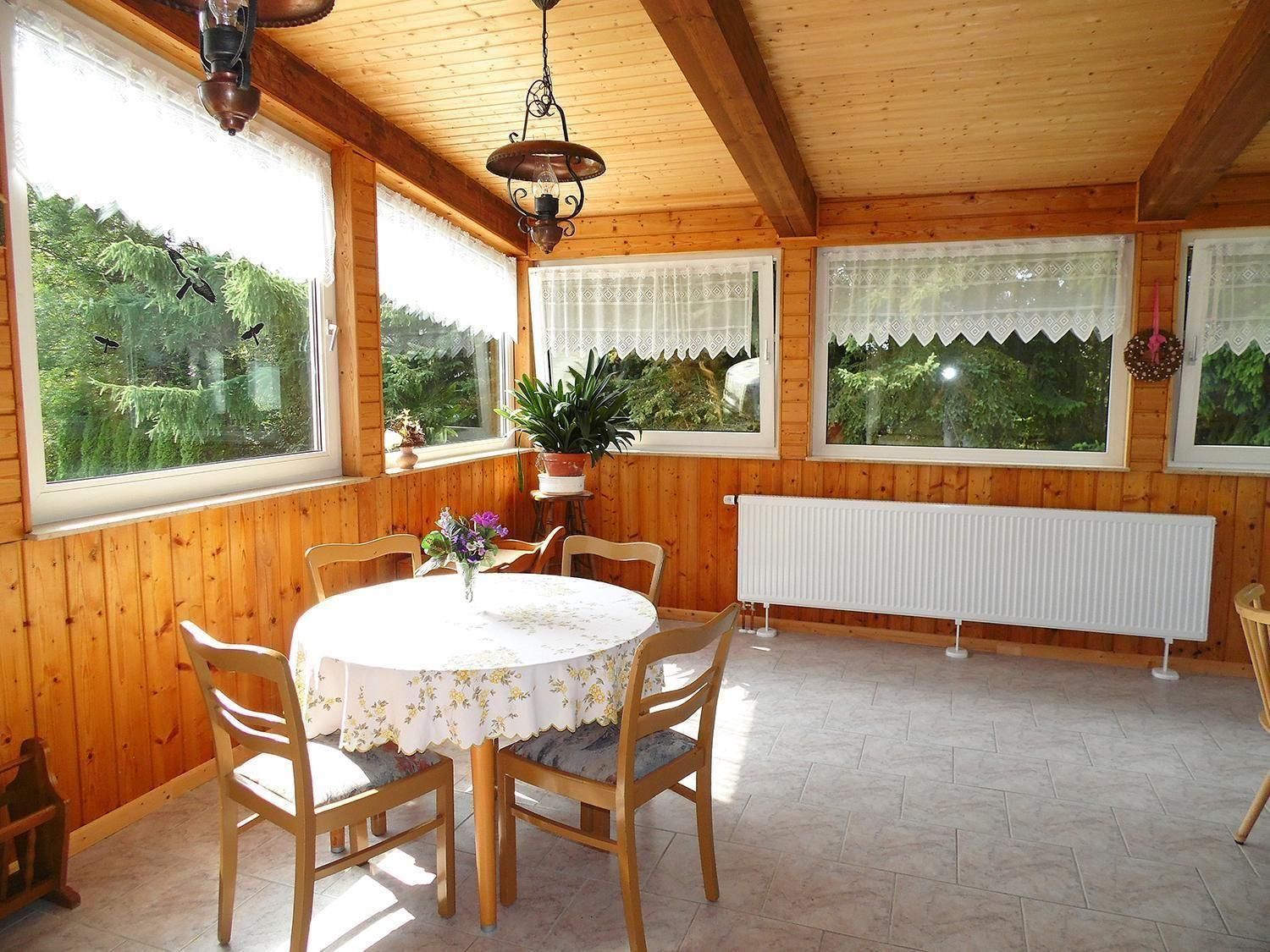 Im Inneren erwartet Sie ein geräumiger Flur mit Garderobe, der Sie in zwei barrierefreie Zimmer im Erdgeschoss führt. Die voll ausgestattete Küche mit gemütlicher Essecke, ein behagliches Wohnzimmer, ein großzügiges Bad sowie ein einladender Wintergarten, der bis zu 15 Personen Platz bietet für gesellige Stunden, machen Ihren Aufenthalt komfortabel und unvergesslich. Alle 7 Gästezimmer sind mit Waschgelegenheiten ausgestattet und bieten Warm- und Kaltwasser. Zudem stehen ein Kinderbett und -stuhl auf Anfrage zur Verfügung, und für zusätzlichen Komfort gibt es im Haus noch eine weitere Dusche mit WC sowie ein separates WC.