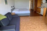Die Ferienwohnung ist sehr zweckmäßig eingerichtet und ideal für 2 Personen; Wohn- und Schlafraum ein Raum; Du/WC, Küche, Breitbild-TV , Sitzcouch; Esstisch , High-Speed-Internet ; möblierte Terrasse und Garten, auf Wunsch auch eingezäunt für Haustiere: herrlicher Ausblick auf Wiesen und Felder, sowie auf die Bayer. Berge, Gartengrill,