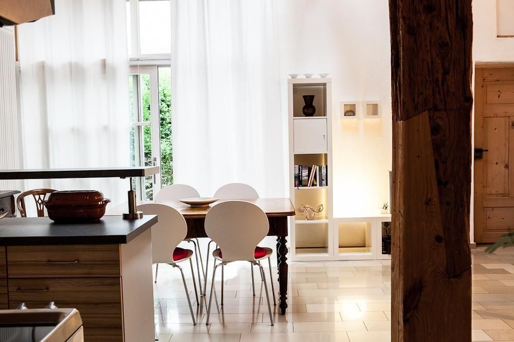 Entdecken Sie dieses außergewöhnliche Apartment im Erdgeschoss, das Herzen mit seiner einzigartigen Mischung aus Tradition und Moderne höherschlagen lässt. Dieses mit einem eigenen Eingang versehene Juwel, gehüllt in die Authentizität eines denkmalgeschützten Jurahauses, bietet auf 40 m² Wohnfläche Platz für bis zu vier Gäste. Renoviert mit viel Liebe zum Detail, ermöglicht es ein Wohnen wie zu Uromas Zeiten, ohne dabei auf modernen Komfort verzichten zu müssen.