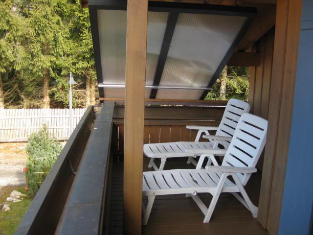 Der Außenbereich unseres Chalets lädt mit einer großzügigen Terrasse, ausgestattet mit Gartenstühlen und Tisch, zum Entspannen und Genießen ein. Ein idyllischer Gartenanteil bietet Raum für Erholung unter freiem Himmel. Für Ihre Anreise mit dem Auto steht ein eigener Kfz-Stellplatz direkt vor dem Haus bereit. Hier können Sie die Ruhe der Natur in vollen Zügen genießen und den Alltag hinter sich lassen.
