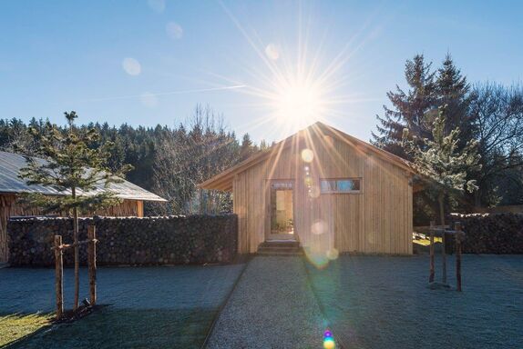 -RAUM FÜR WERTVOLLE ZEIT- Einfach und klar - außen, ganz in der Tradition der Schutzhütten für Menschen, denen der Wald schon seit Jahrhunderten Heimat ist und dem Broterwerb dient - regional verortet – Holz als zentrales Bauelement, innen und außen – mit hohem Wert für das Jetzt.