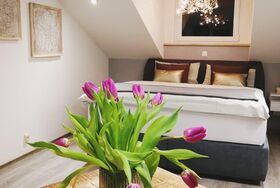 Das ca. 50 qm große Loft ist im minimalistischem Design eingerichtet. Nussabaum, weiß und grün gestalten den Raum sehr behaglich. 3 Fenster durchfluten den Raum mit Tageslicht. Die ideale Wohlfühloase für 2 Personen.