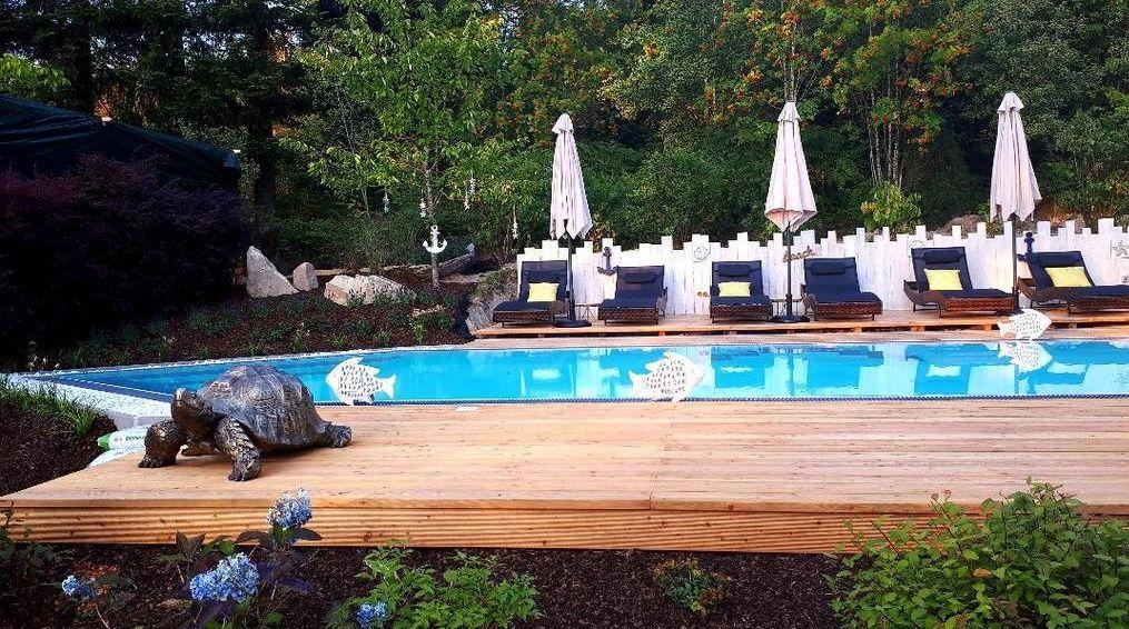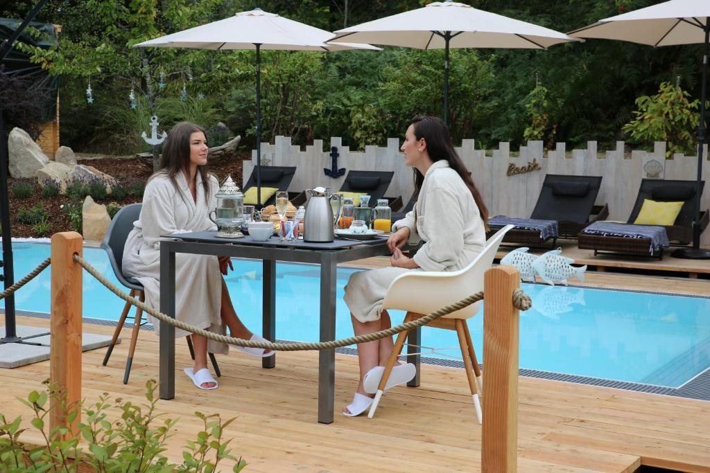 Bettwäsche und Handtücher werden gestellt. Schwimmteich mit Liegewiese und Sandstrand sowie gemütliche Terasse mit Grillmöglichkeit. Stellplatz für PKW vorhanden! 300 qm² großes Wellness- und Kosmetikstudio mit Sauna und Outdoorpool direkt im Haus.