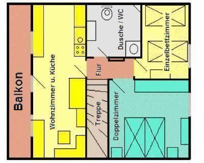 Schlafmöglichkeiten: Anzahl Doppelbetten (größer als 1,80 m Breite): 1; Anzahl Einzelbetten: 2