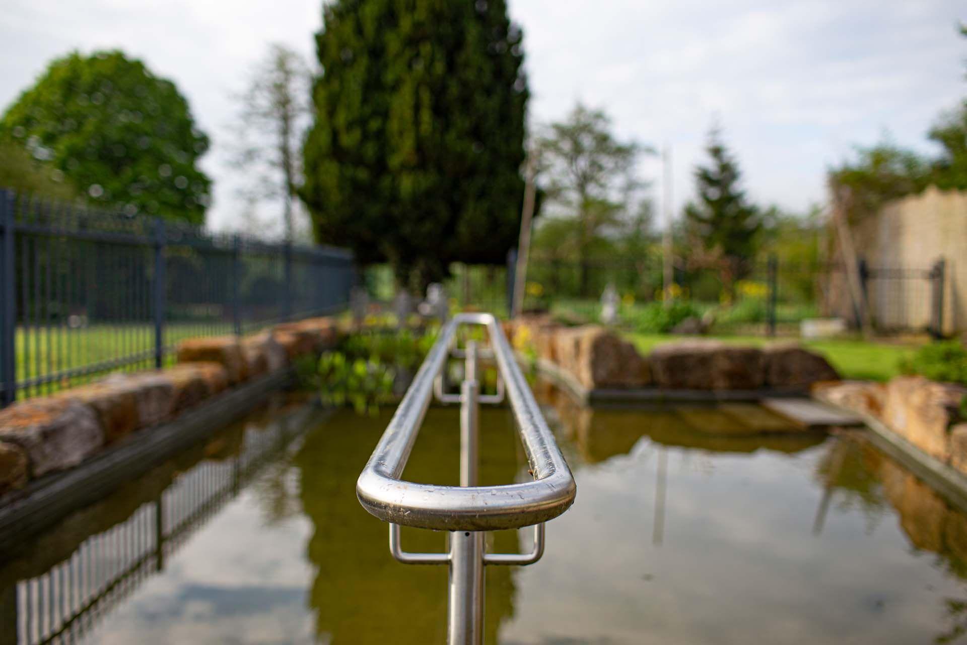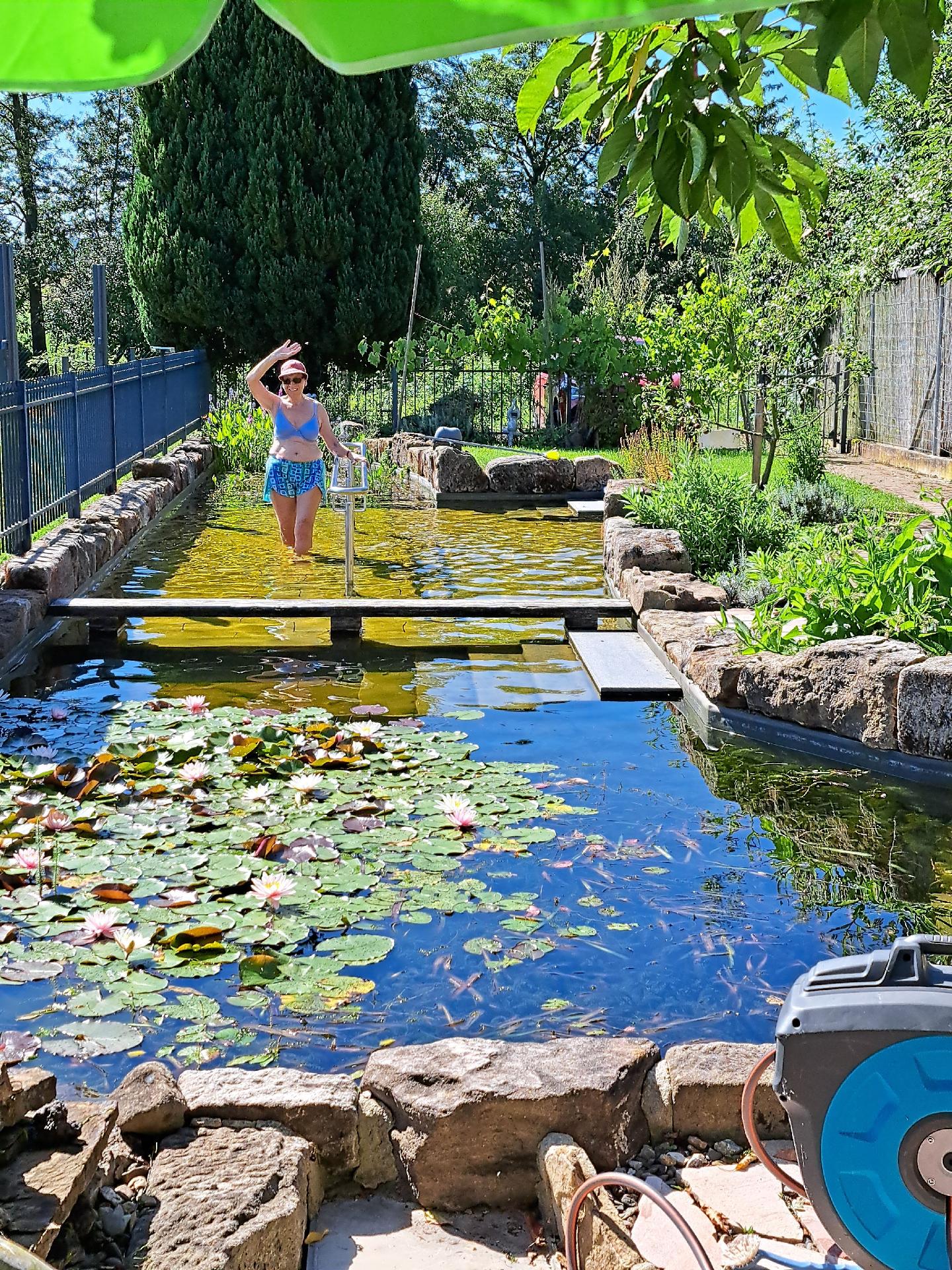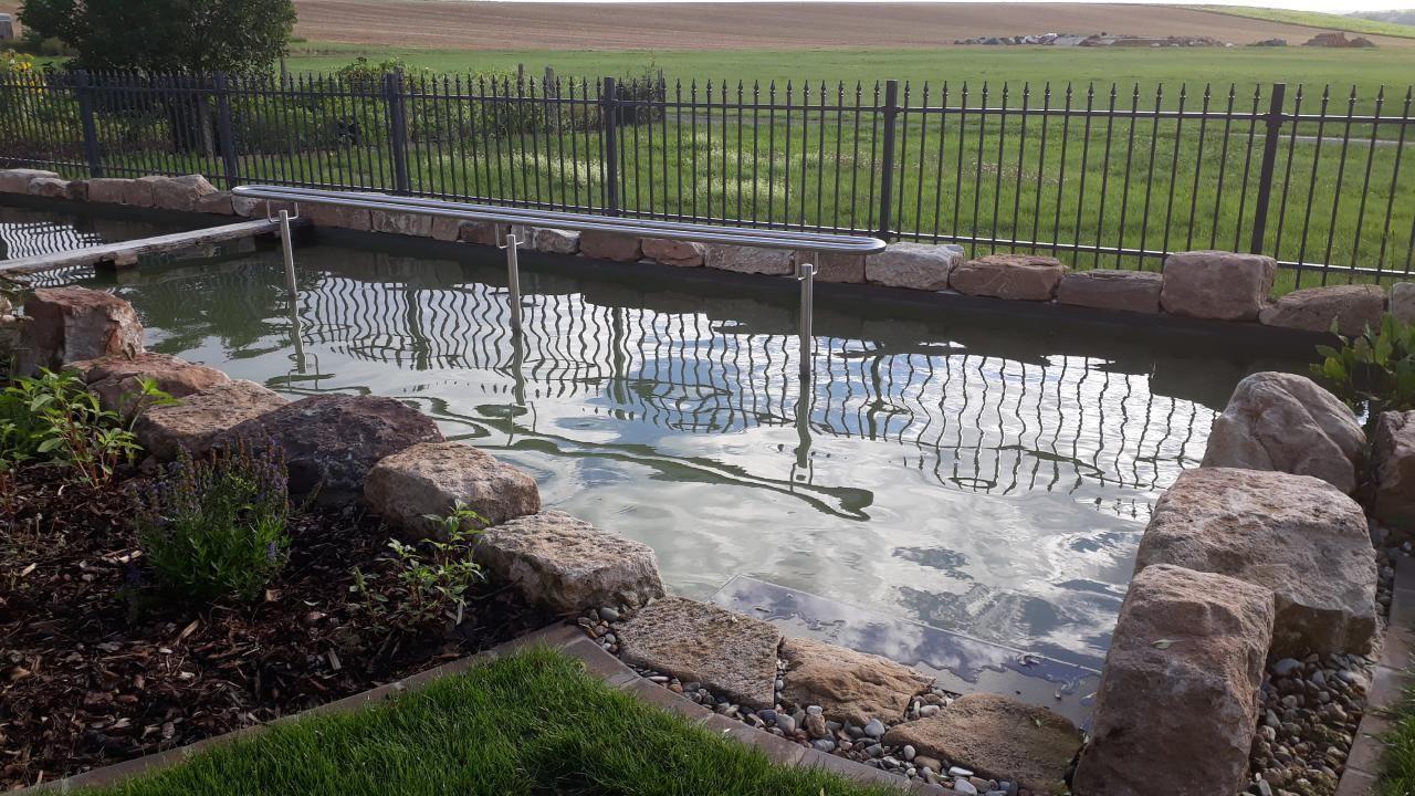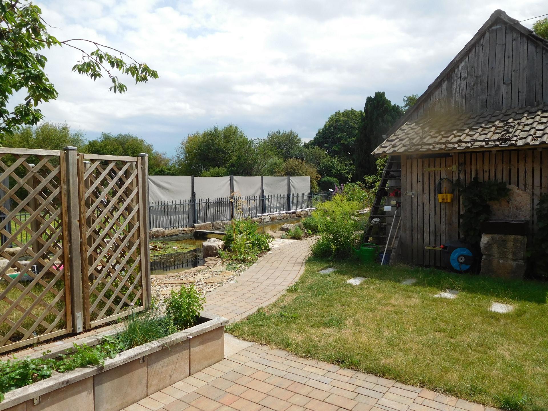 Gebetslabyrinth, Gartentische mit Bestühlung und entsprechenden Kissen, 2 x Grill, genug Liegestühle für alle, 2 Wiesen, Gärten, Kneippeinrichtung mit Sauna und Naturpool mit Trett-, Arm- Tauch und Liegebereiche im Wasser... besonders ruhig gelegen am Rande des kleinen Dorfes