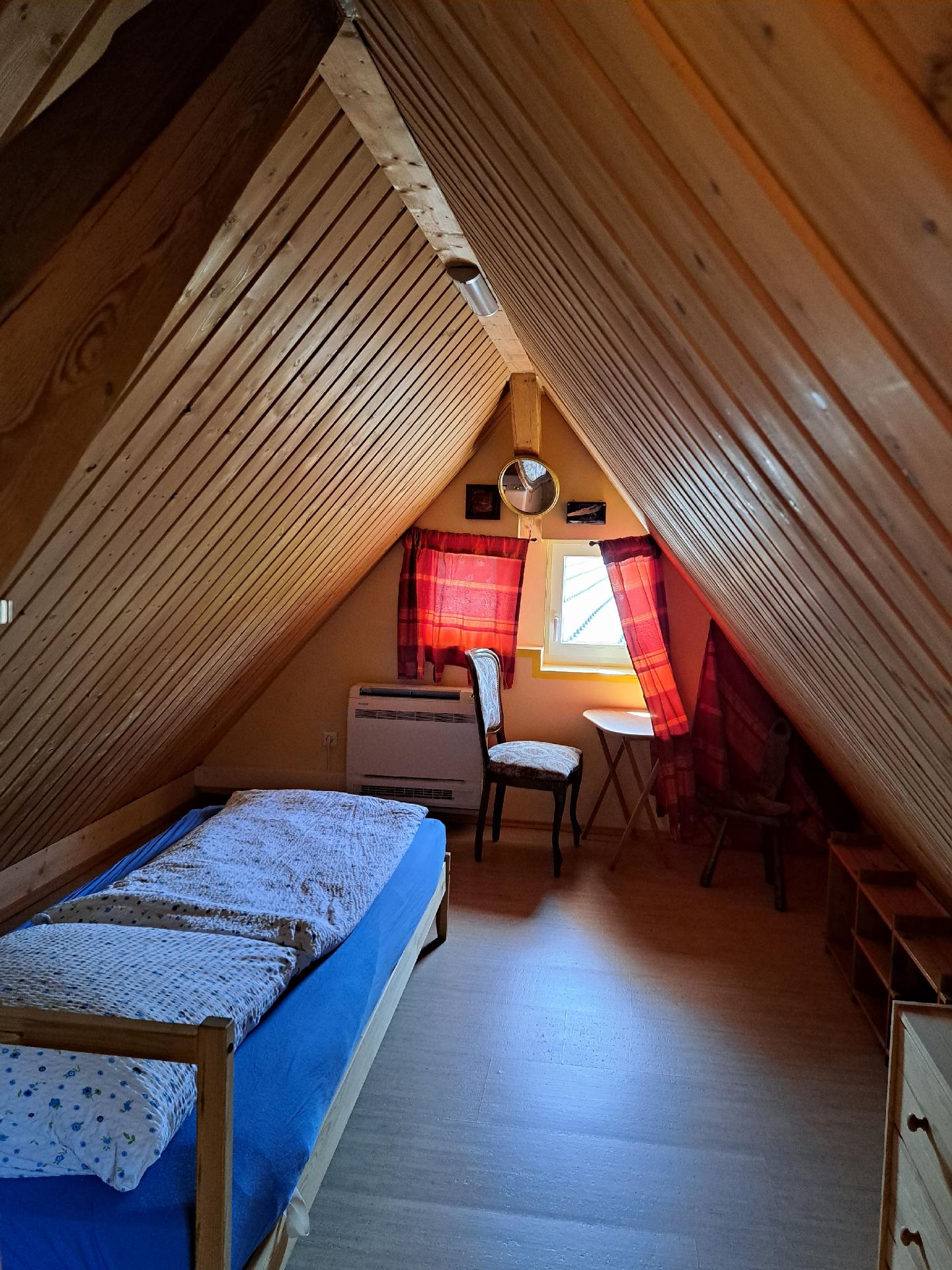 Sonstige Schlafzimmereinrichtung : Dachetage -Einzelbett, Schreibtisch, Stuhl, Garderobenstangen, Schränkchen