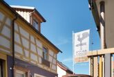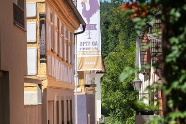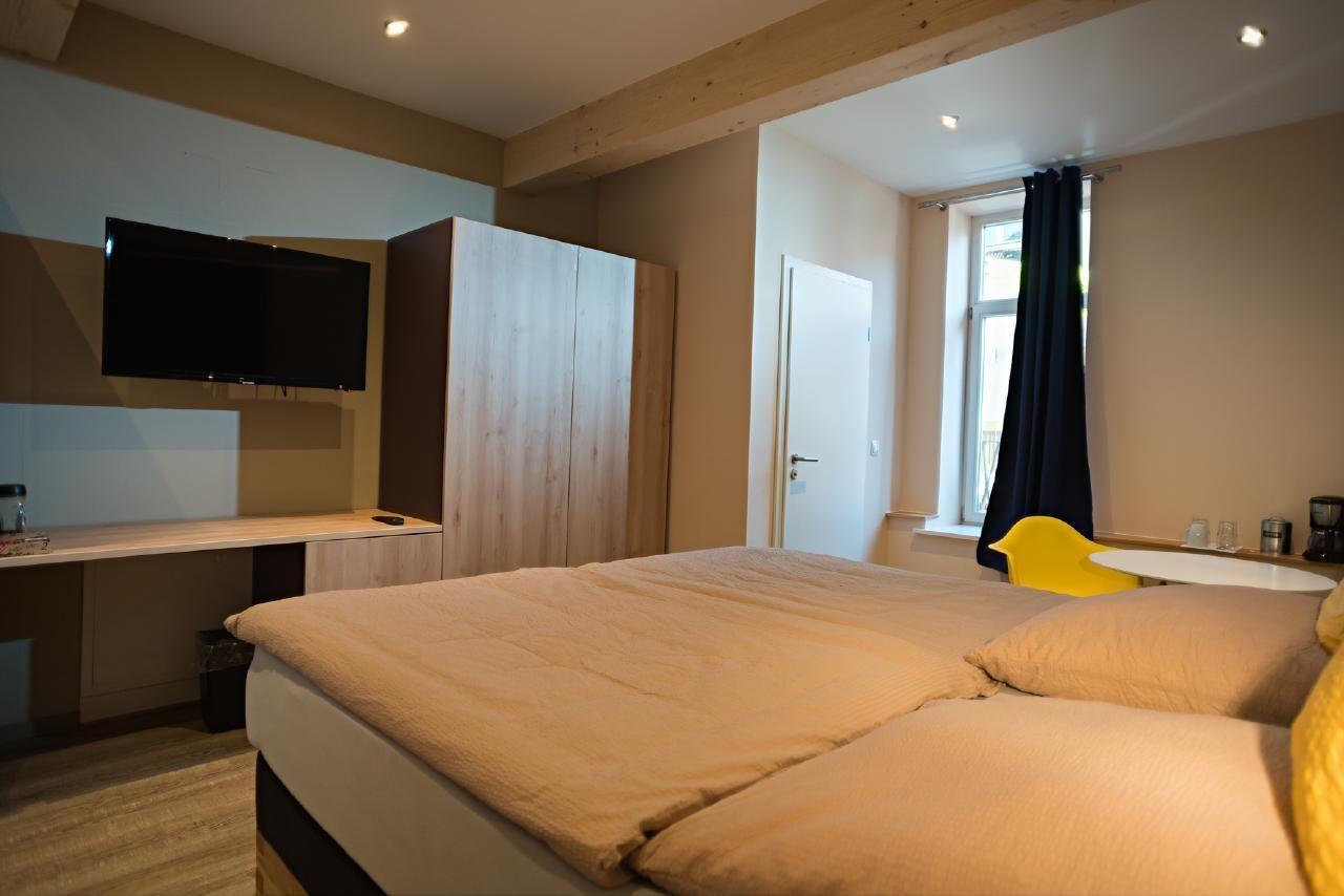 Ruhiges gemütlich eingerichtetes Superior-Studio mit Doppelbett im Obergeschoß der Hofstallung mit insgesamt 6 Apartments und der Futterkammer.