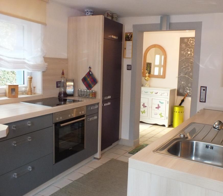 Das Ferienhaus erstreckt sich über ein Erd- und Obergeschoss auf 60 m² Wohnfläche und eignet sich ideal für bis zu vier Personen. Im Jahre 2011 wurde das Haus komplett renoviert und mit viel Komfort neu eingerichtet. So wird Ihnen im Erdgeschoss ein mit einer elektrischen Fußboden beheizter offener Wohnraum mit anschließendem Essplatz und einer umfangreich ausgestatteten Einbauküche geboten. Im Obergeschoss schlafen Sie in zwei Doppelzimmern. Während das eine Schlafzimmer über ein Doppelbett einer Maße von 160 cm x 200 cm verfügt, ist das zweite Schlafzimmer mit einem Himmelbett (140 cm x 200 cm) möbliert. Das Badezimmer ist als Duschbad mit Dusche und WC, einer Waschmaschine, einem Haartrockner und Kosmetikspiegel möbliert. Im Wohnbereich nehmen Sie zu dritt auf einer gemütlichen Couch Platz. Der lederne Lesesessel mit Beinablage bietet Entspannung nach einem Tagesausflug während der 81 cm große Flachbildfernseher sowie eine Musikanlage für Unterhaltung am Abend sorgen. Am Esstisch mit vier Stühlen vorbei gelangen Sie in den Kochbereich, der mit einer Einbauküche eingerichtet ist. Die moderne Einbauküche ermöglicht Ihnen eine komfortable und umfangreiche Selbstversorgung dank einer Geschirrspülmaschine, eines Cerankochfeldes mit Backofen, eines Kühlschranks mit Gefrierfach sowie den üblichen Kleinelektrogeräten wie einer Kaffeemaschine und einem Wasserkocher. Die kostenlose Internetverbindung per WLAN rundet die Ausstattung ab.