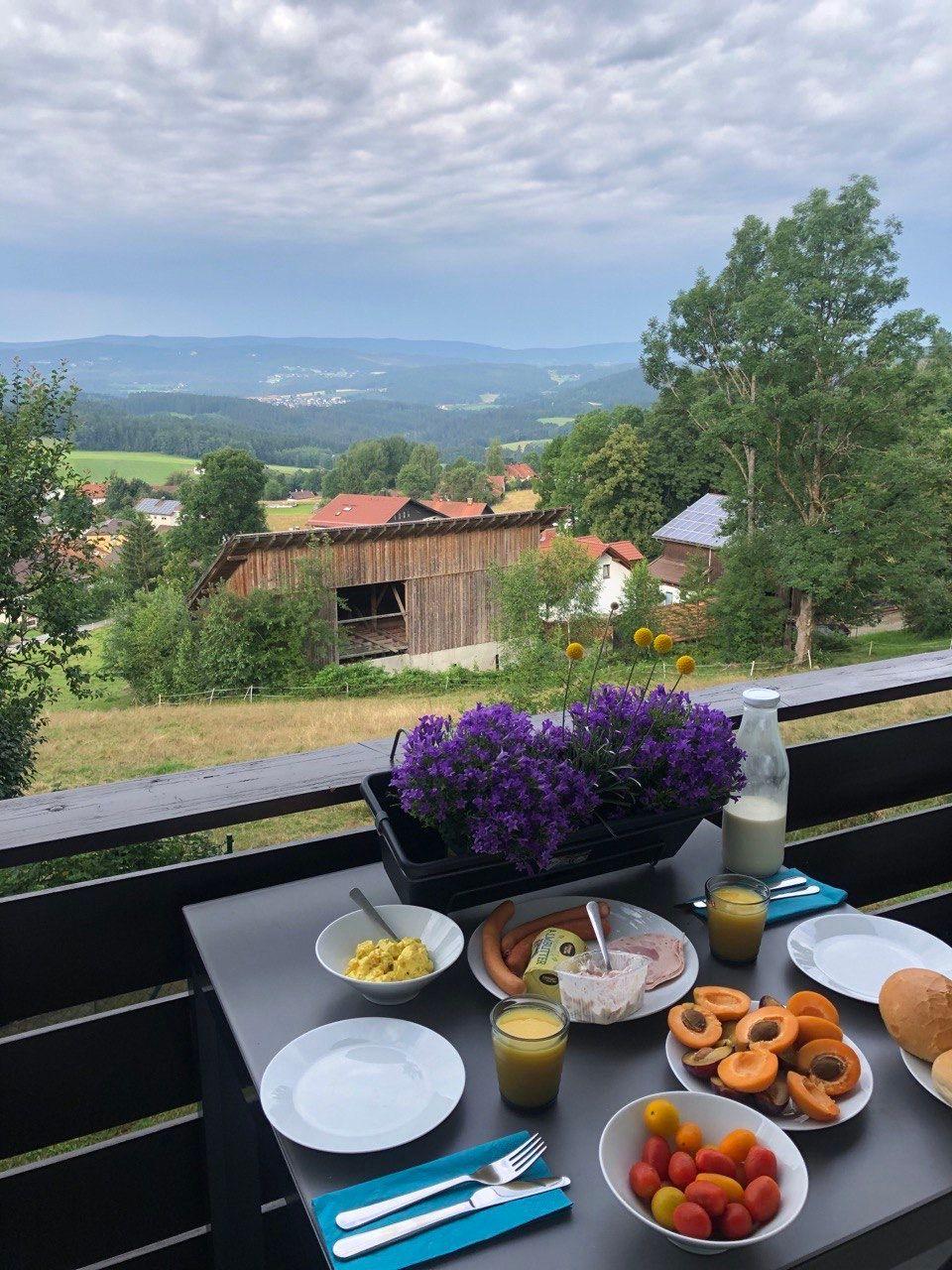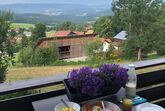 Besonderes Highlight ist der atemberaubenden Blick vom Balkon über die Täler der bayerischen Landschaft.