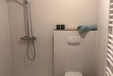 Im Bad, ausgestattet mit WC, Waschbecken und Dusche, stehen unseren Gästen auch ein Haartrockner, Handwaschseife und Kosmetiktücher zur Verfügung.