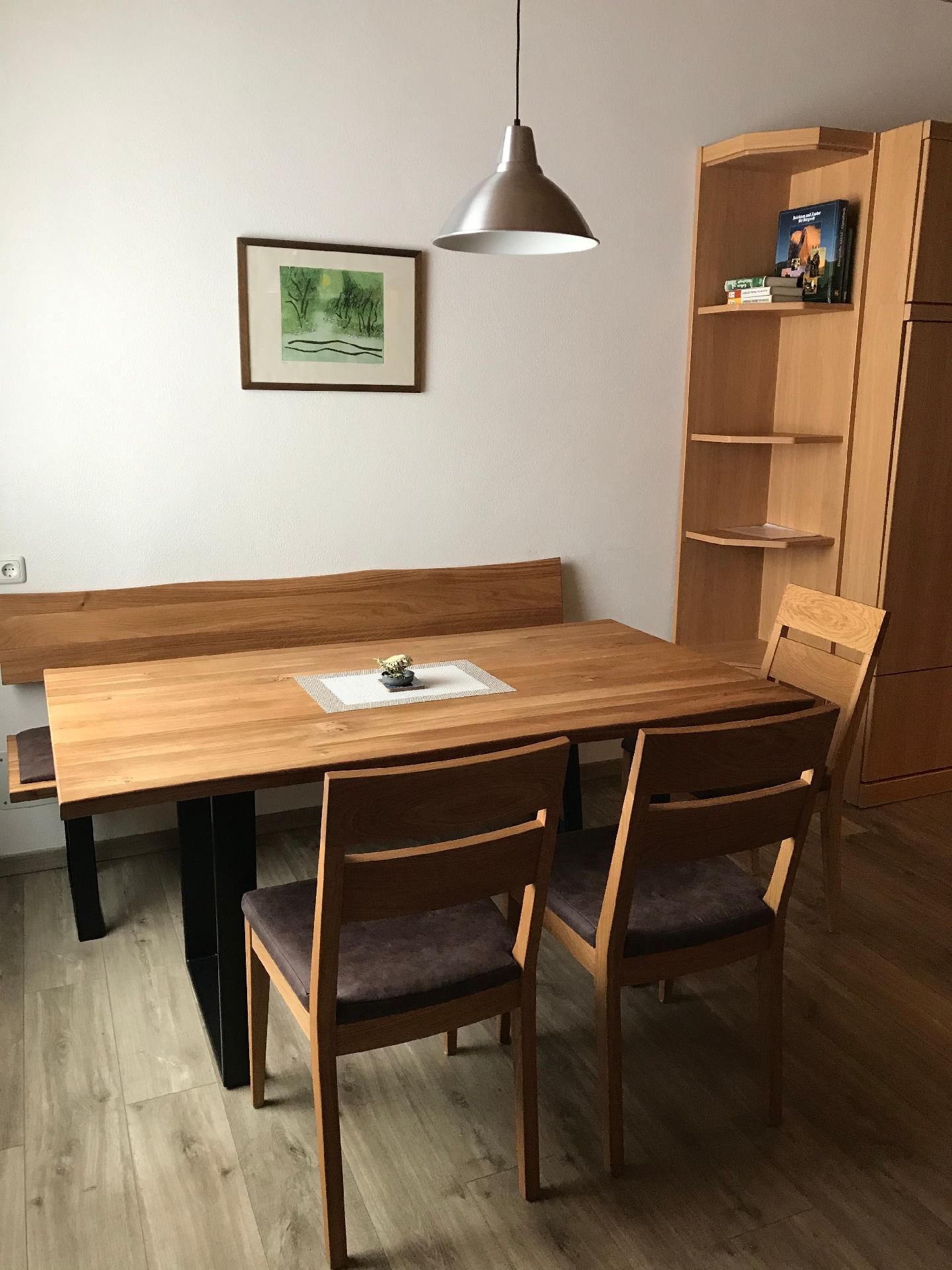 Die Wohnung Nr. 1 mit kleiner Süd/Ost-Terrasse in den Garten ist gemütlich eingerichtet. 1 Wohn-/Schlafraum mit Wandschrankbetten, Schlafcouch, Eßecke, 1 Sessel und Couchtisch; 1 Schlafzimmer mit Ehebetten (2 m); Küche mit kleiner Eßecke; Bad mit Dusche, Waschbecken und WC; Flur; Garten;