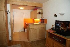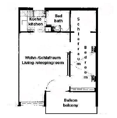 1 Wohn-/Schlafraum mit einem Wandschrankbett, Doppelbettcouch, Eßecke, 2 Sessel und Couchtisch; 1 Schlafzimmer mit Ehebetten und Etagenbetten; Bad mit Dusche, Waschbecken und WC; Küche und Flur;