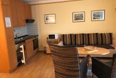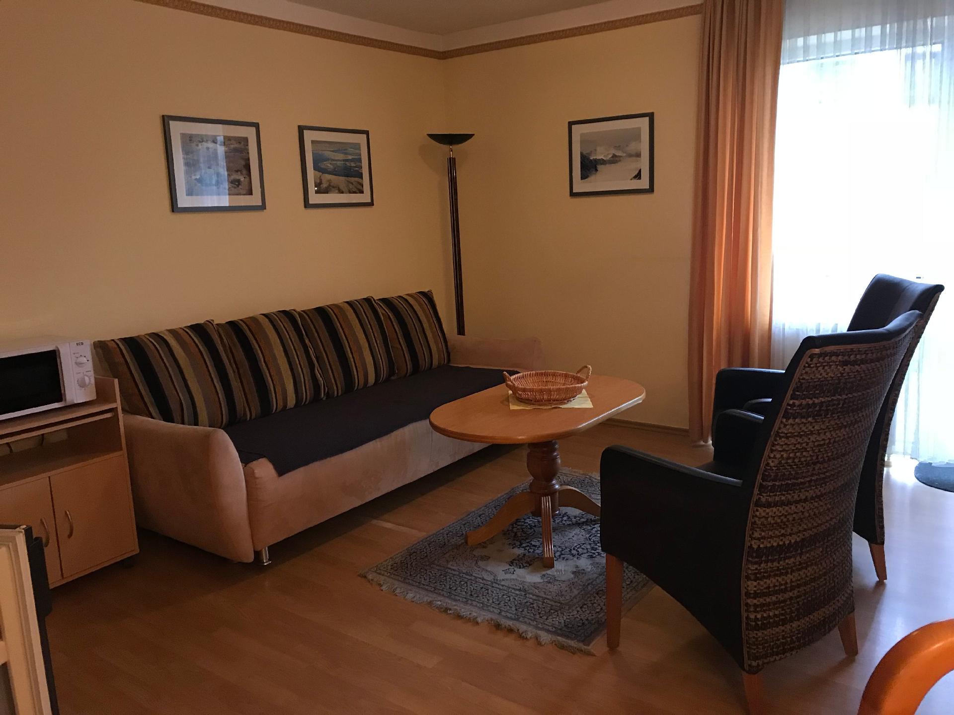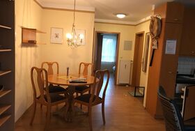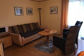Innen finden Sie eine gut ausgestattete kleine Wohnküche mit allem Nötigen für den täglichen Bedarf, darunter eine Filter-Kaffeemaschine und ein Wasserkocher für den perfekten Start in den Tag. Die Wohnung verfügt über einen gemütlichen Schlafraum, der zum Träumen einlädt, sowie ein Badezimmer mit Dusche, das nach einem langen Tag der Erkundung für Entspannung sorgt. Zum Komfort trägt zudem der SAT-Fernseher bei, der gemütliche Abende mit Ihren Lieblingssendungen ermöglicht.