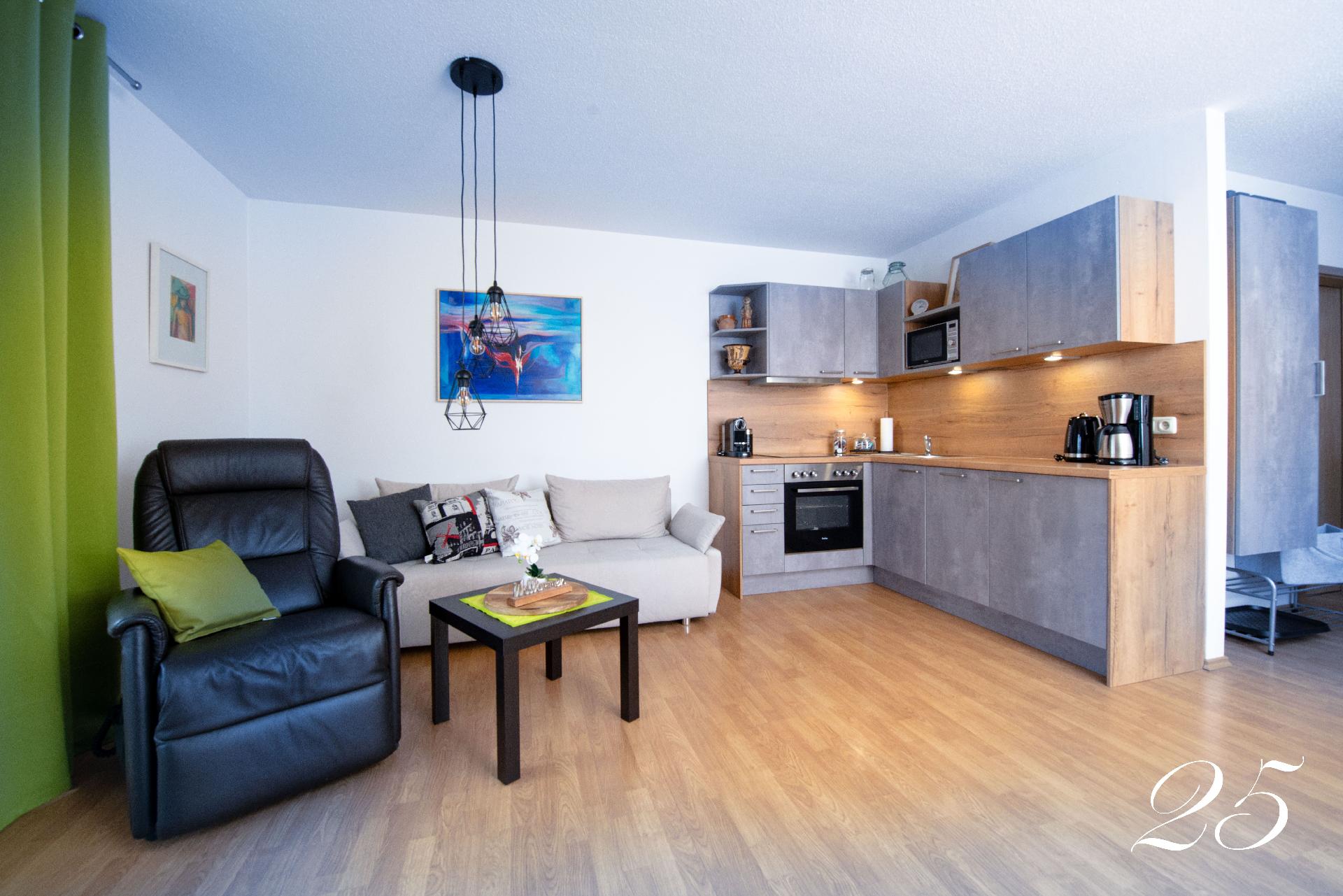 Unser besonderer Service für Sie - täglich drei Stunden freier Aufenthalt in der kompletten AQACUR-Wellnesswelt inkl. Riesenreifen-Rutsche, großzügigem Saunabereich mit Außensauna, Whirlpool, diversen Saunaarten, Solebecken und Freibadbereich (der Abreisetag ist nicht enthalten) - Tiefgaragenstellplatz und Fahrradkeller - Waschmaschine und Trockner gegen Gebühr - Frühstück vor Ort zubuchbar, gern auch Halbpension (ca. 5 Gehminuten entfernt) - kostenfreie Nutzung von Bus und Bahn - Haustiere herzlich willkommen gegen Gebühr - kostenfrei Kinderbett/Hochstuhl kostenfrei zubuchbar ca. 5 Gehminuten entfernt befindet sich der Kurpark mit Motorikpark, Kinderspielplatz, Minigolf und vielen Spazierwegen sowie kleinem Cafe/Restaurant. Ebenfalls in ca. 5 Gehminuten entfernt befindet sich die Brauerei Lindner mit eigener Brauerei, Biergarten und rustikaler Hausmannskost. In ca. 2 Gehminuten befindet sich eine Bäckerei, die täglich frische Brötchen offeriert. Gerne kann kostenfrei W-lan zur Verfügung gestellt werden, einfach in der Rezeption die entsprechenden Daten abholen. In der Rezeption erhalten Sie alle Informationen über Ausflugsmöglichkeiten und vieles mehr.Kurzbeschreibung 1Sonstige Räume : Wohnküche