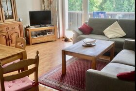 Diese behagliche Wohnung im 2. Obergeschoss erstreckt sich auf etwa 55 m². Zu den Annehmlichkeiten gehören neben einem einladenden Wohnraum mit einer praktischen Doppelschlafcouch auch ein abdunkelbares Schlafzimmer für erholsame Nächte. Für Unterhaltung sorgt ein Flatscreen-Fernseher. Die Nutzung einer Waschmaschine und eines Wäschetrockners im Gebäude steht allen Gästen zur gemeinschaftlichen Nutzung bereit, damit Sie auch bei längeren Aufenthalten stets frische Kleidung haben.