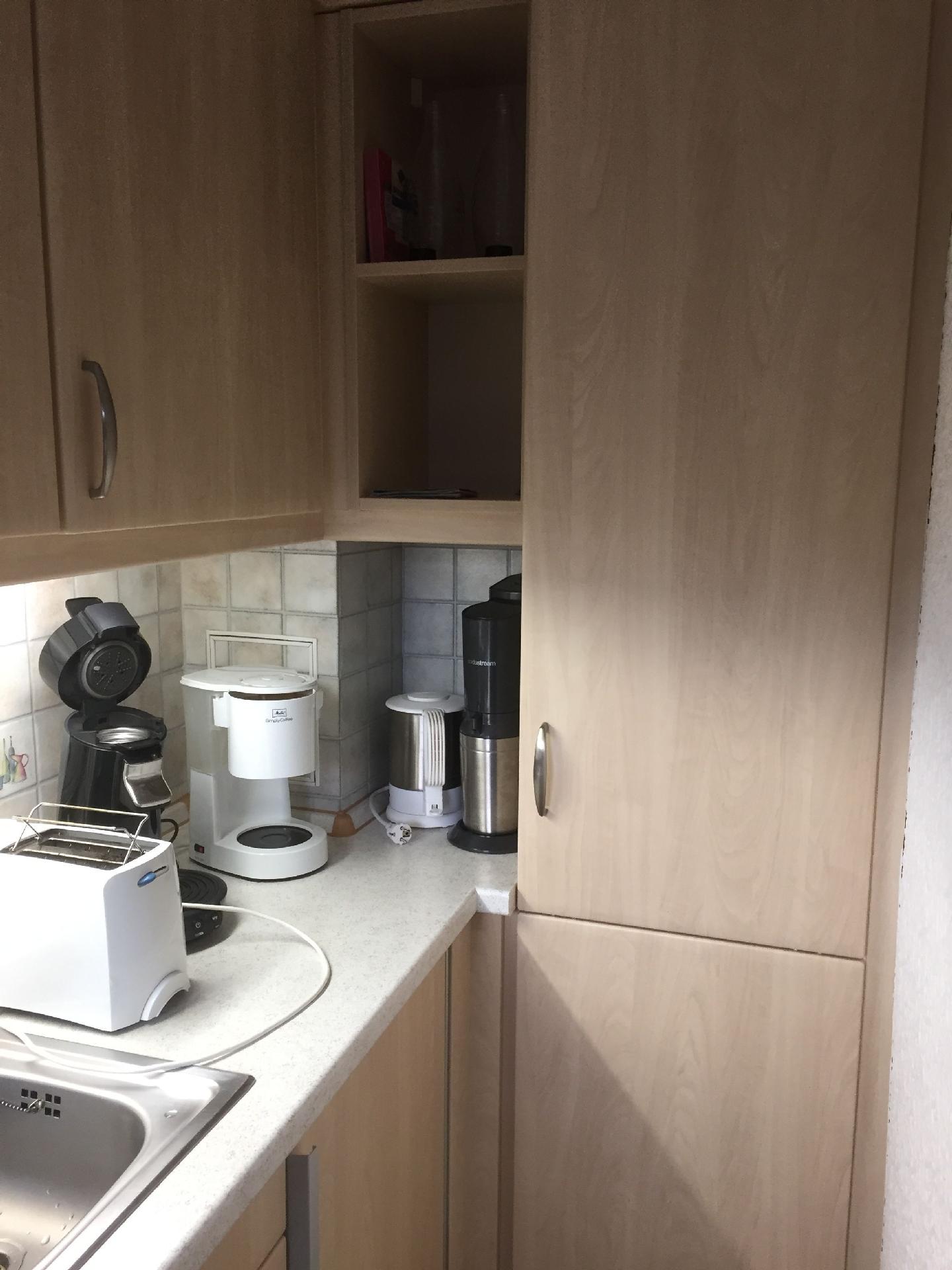 Kochen: Backofen; Gefrierfach; Kaffeemaschine; Kaffeepadmaschine; Kühlschrank; Toaster; Wasserkocher