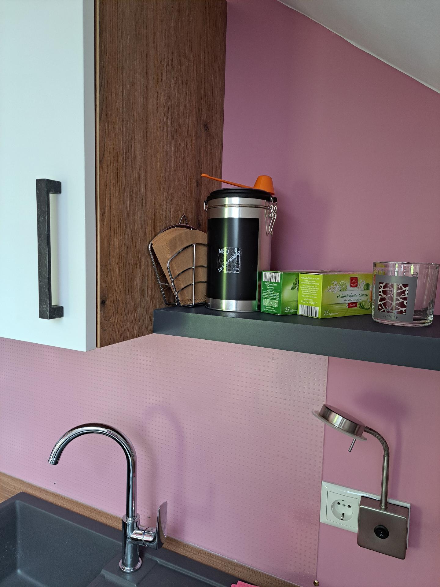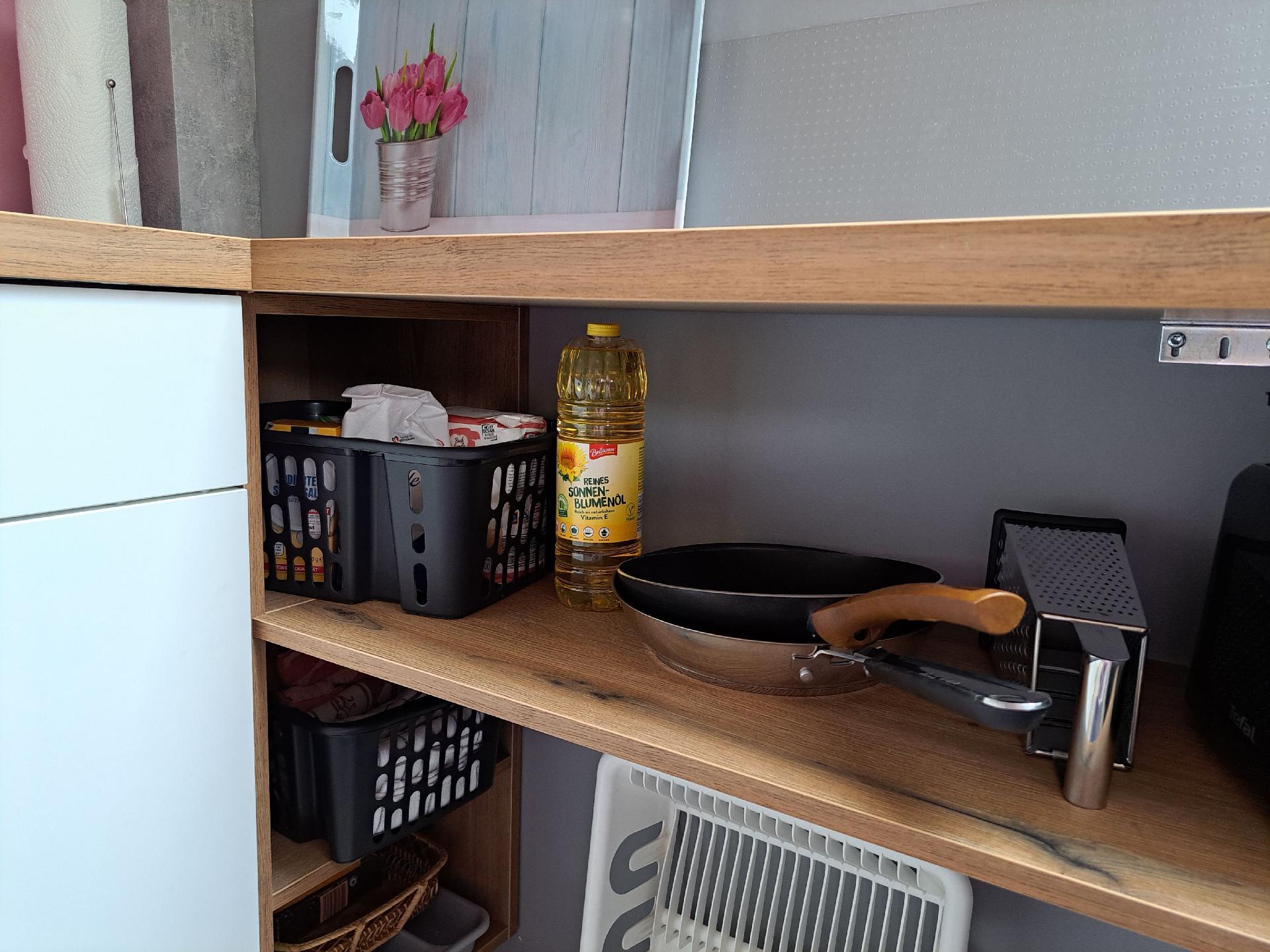 Kochen: Backofen; Ceranherd; Gefrierfach; Kaffeemaschine; Kühlschrank; Mikrowelle; Spülmaschine; Toaster; Wasserkocher