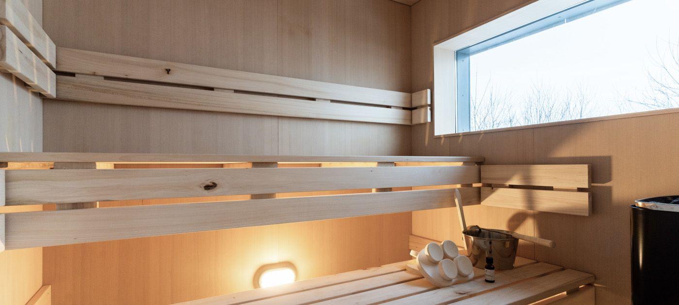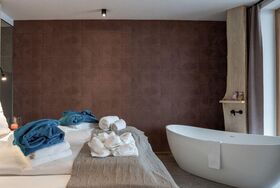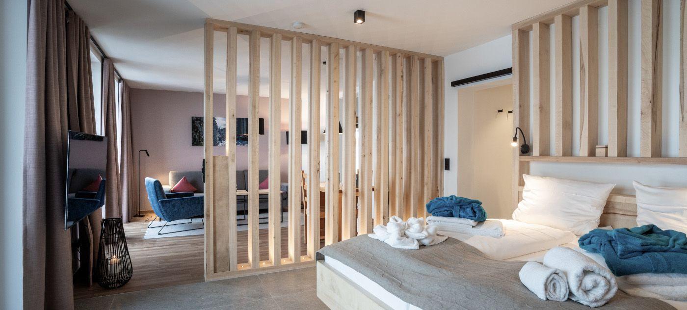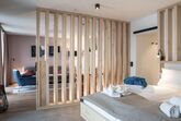 Helles Ahornholz bestimmt das Design. Verbindet Schlaf- und Wohnbereich. Mit bodentiefen Fenstern. Baden und träumen in der freistehenden Wanne. Oder saunieren und regenerieren in der eigenen Sauna.