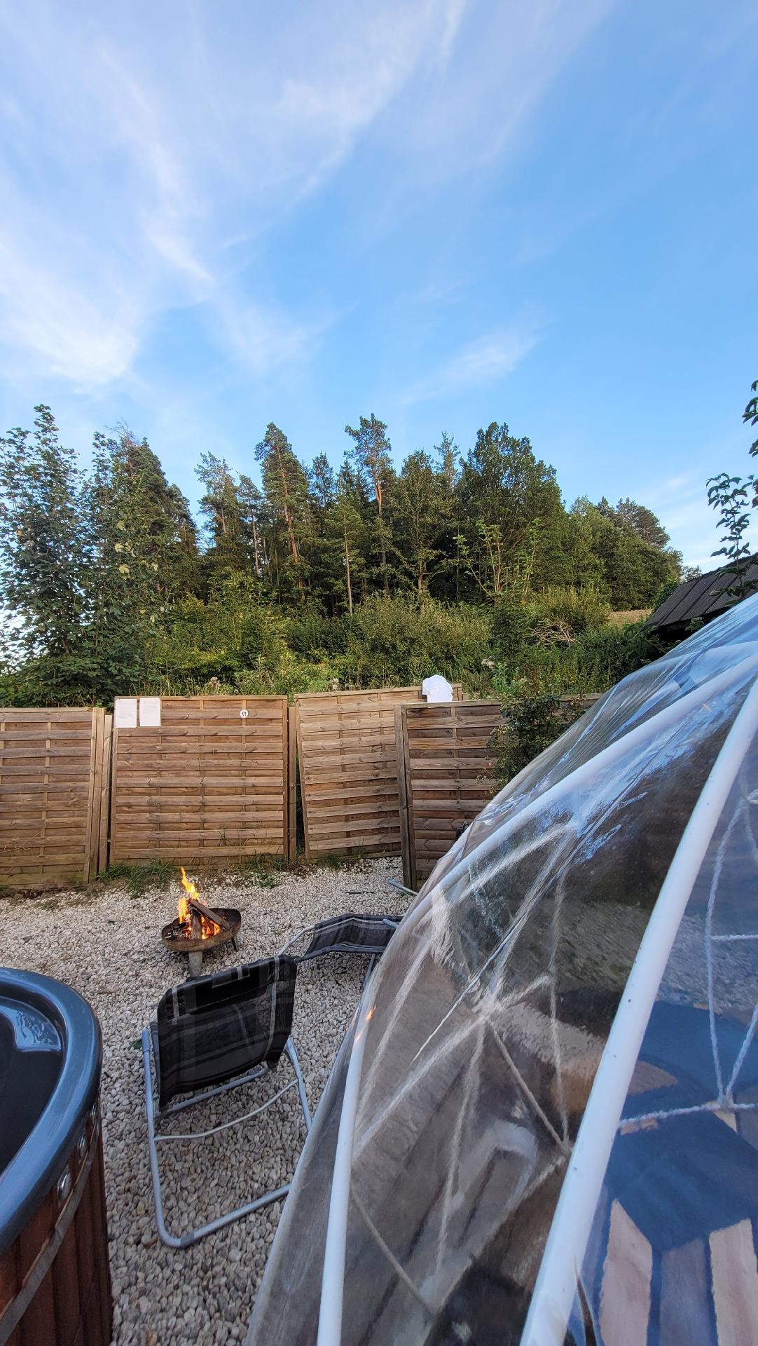 ♡ Unsere Bubble bietet auf gemütlichen 10m² Platz für zwei Personen und ist mit einem kuscheligen Doppelbett mit warmer Bettwäsche sowie einem kleinen Tisch mit zwei Stühlen ausgestattet. Im Aussenbereich sorgt eine Feuerschale sowie eine Sitzgelegenheit für entspannte Abende. Auf Wunsch kann ein Holzkohle-Grill zur Verfügung gestellt werden (exkl. Holzkohle).