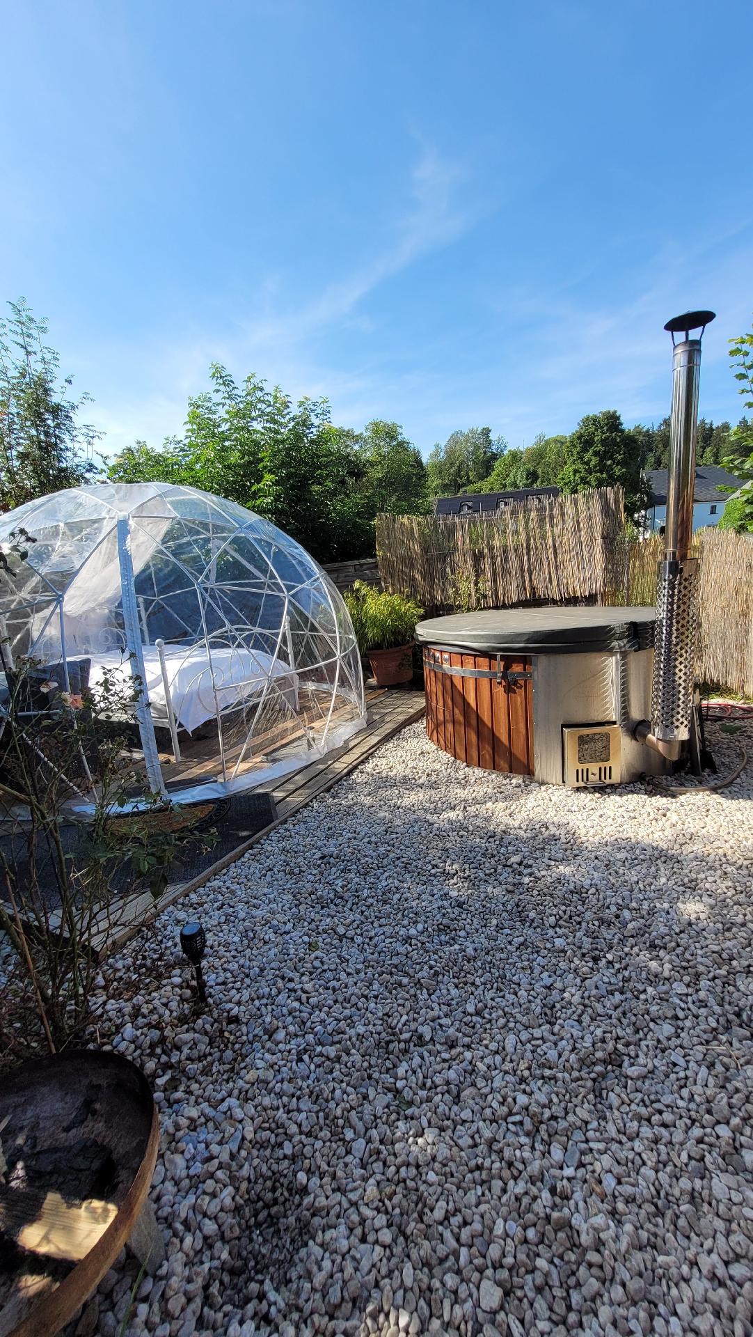 Als Highlight bieten wir einen Hot Tub mit Sprudelsystem und Unterwasserbeleuchtung an (optional zu buchbar).
