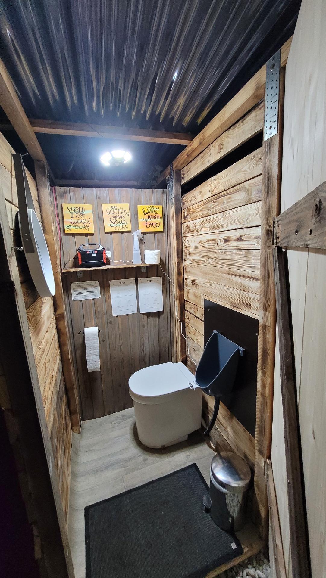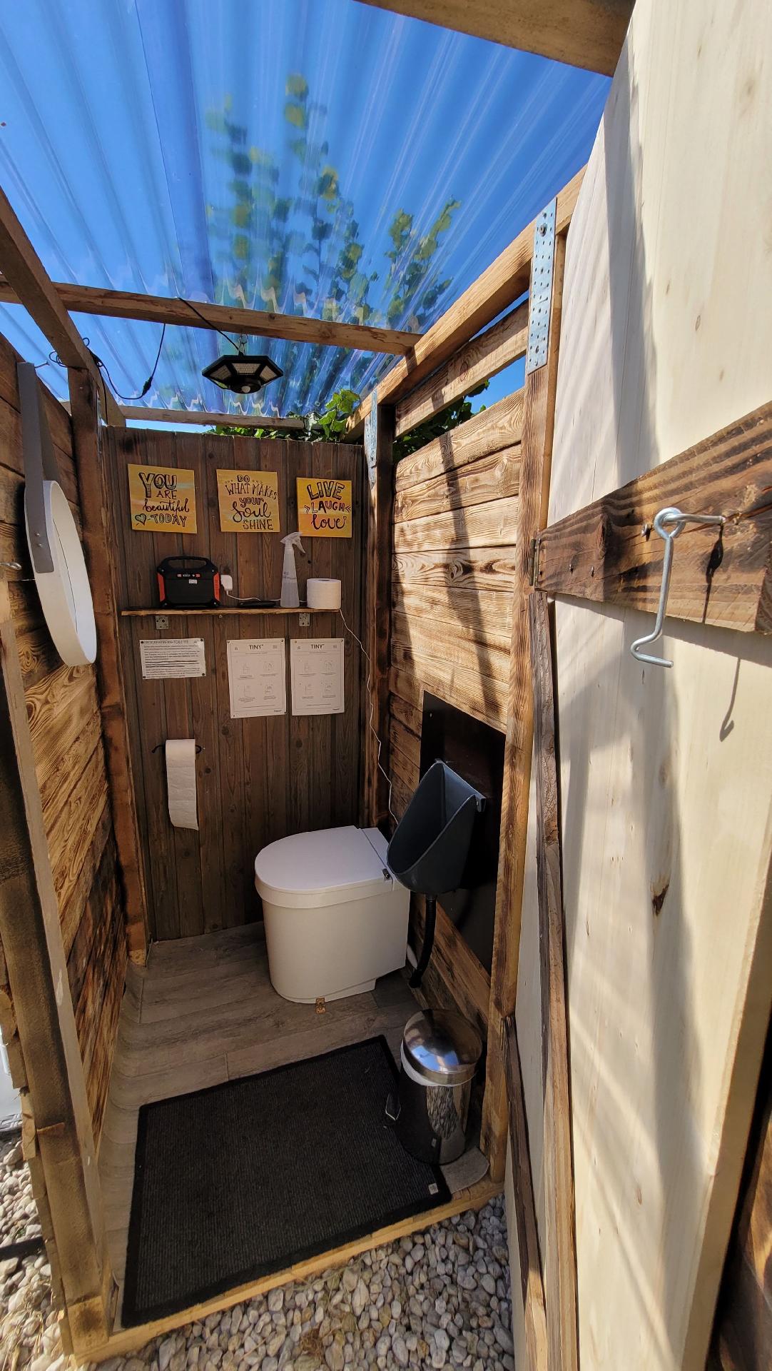♡ Eine einfache Trockentrenn-Toilette mit Waschmöglichkeit befindet sich in einer Hütte neben der Bubble. Ein Gäste-Bad mit fliessend Trinkwasser und einer Dusche befindet sich im ca. 30m entfernten Innenhof.