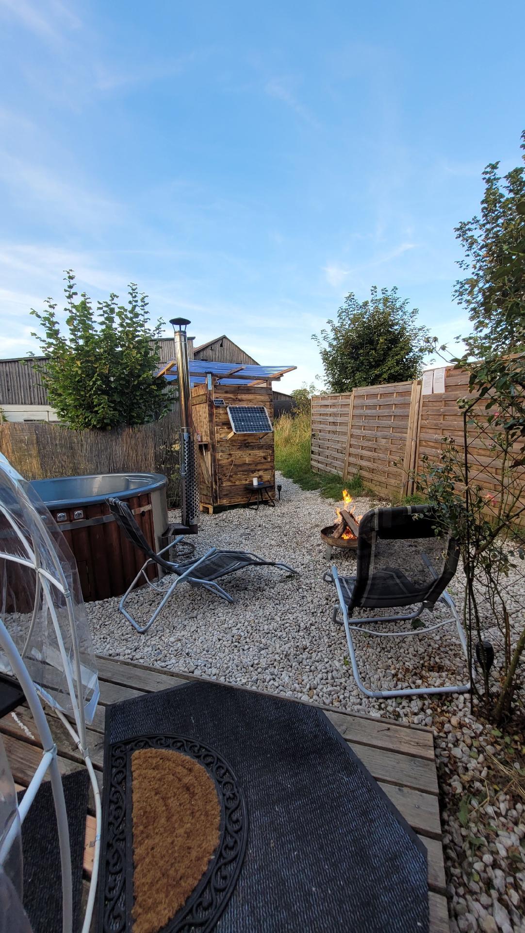 ♡ Als besonderes Highlight befindet sich ein holzbeheizter Hot Tub mit Sprudel-, Hydromassagesystem und Unterwasserbeleuchtung. Gönnt euch dieses einmalige Wellnessvergnügen unter dem Sternenhimmel. Der Hot Tub wird mit frischem Wasser gefüllt und ist daher komplett chemiefrei. Selbstverständlich steht er bei einer Buchung für die alleinige Nutzung zur Verfügung. Auf Wunsch kann Andy - unser Gastgeber vor Ort - den Hot Tub für euch vorheizen. Über ein kleines Trinkgeld für den Aufwand würde er sich freuen. Ansonsten könnt ihr den Hot Tub selber einheizen und solltet dafür ungefähr drei Stunden einrechnen. Um den Hot Tub und die gesamte Unterkunft befindet sich ein Sichtschutz, welcher die nötige Privatsphäre garantiert.