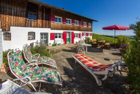 Ortsbeschreibung : Freitags liegt auf fast 1000m Höhe, unweit der Gemeinde Buchenberg. Unser Haus liegt unverbaut nur neben einem weiteren Hof, der neben der Kälberaufzucht auch ein Brotzeitstüberl betreibt - dort kann man leckere Allgäuer Brotzeiten, Kaffee und Kuchen genießen.