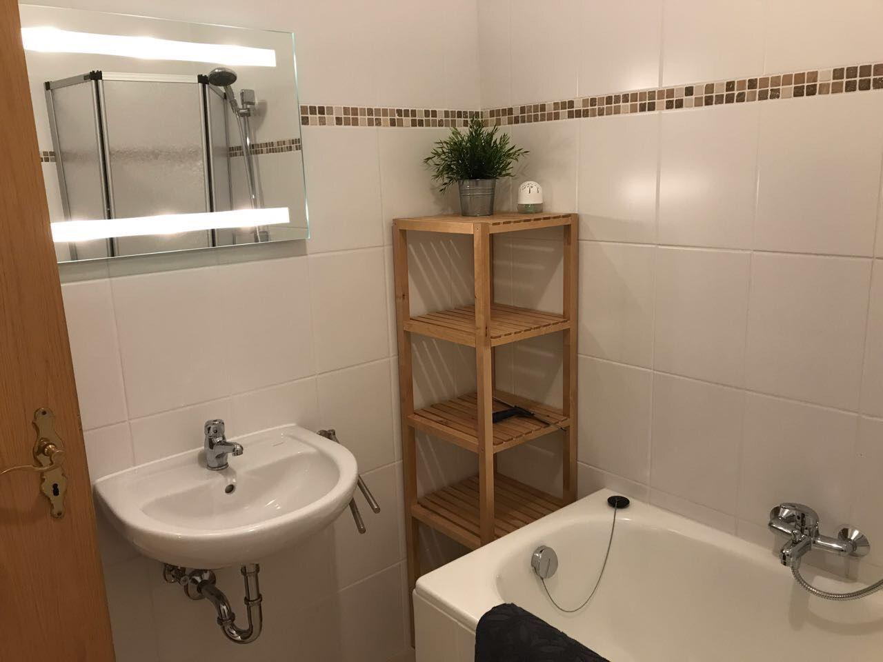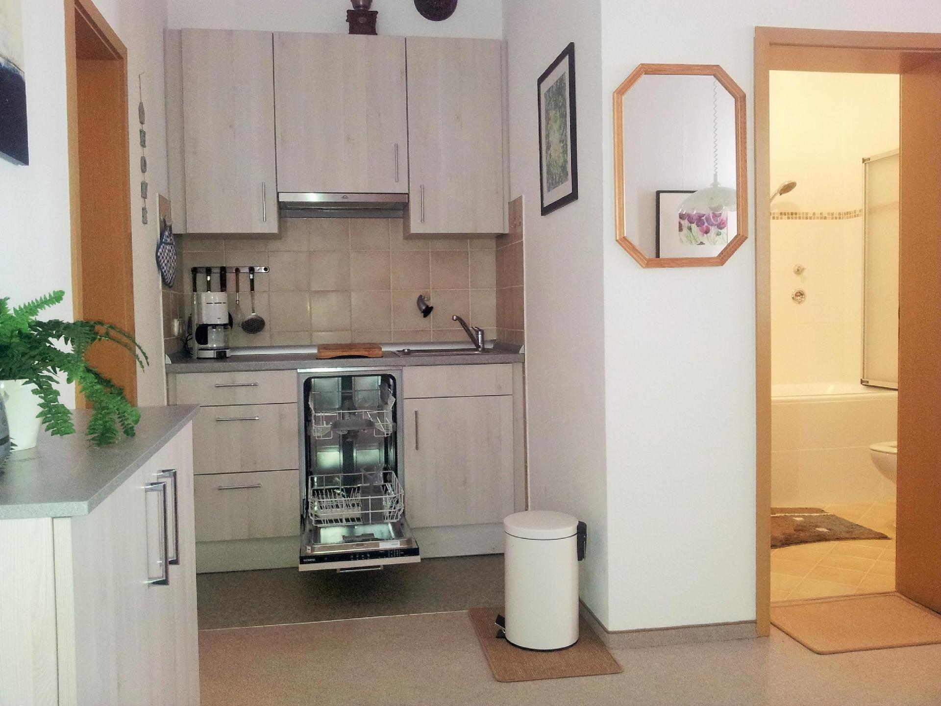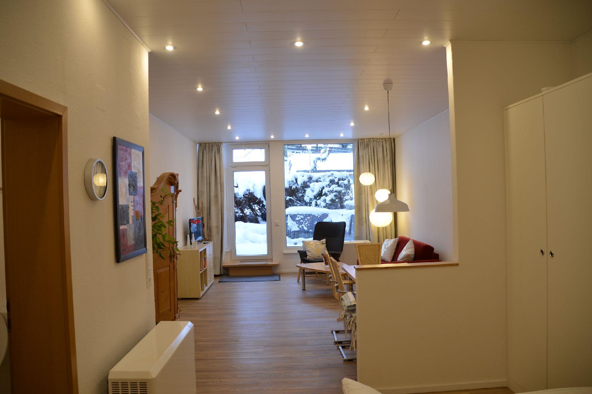 1 Wohn-/Schlafraum mit Küchenzeile, zwei Doppelbettcouches (je 2 m lang), Essecke mit Eckbank, 1 Sessel und Couchtisch; W-Lan, Kabel-TV, Abstellraum, Bad mit Badewanne, Waschbecken und WC;