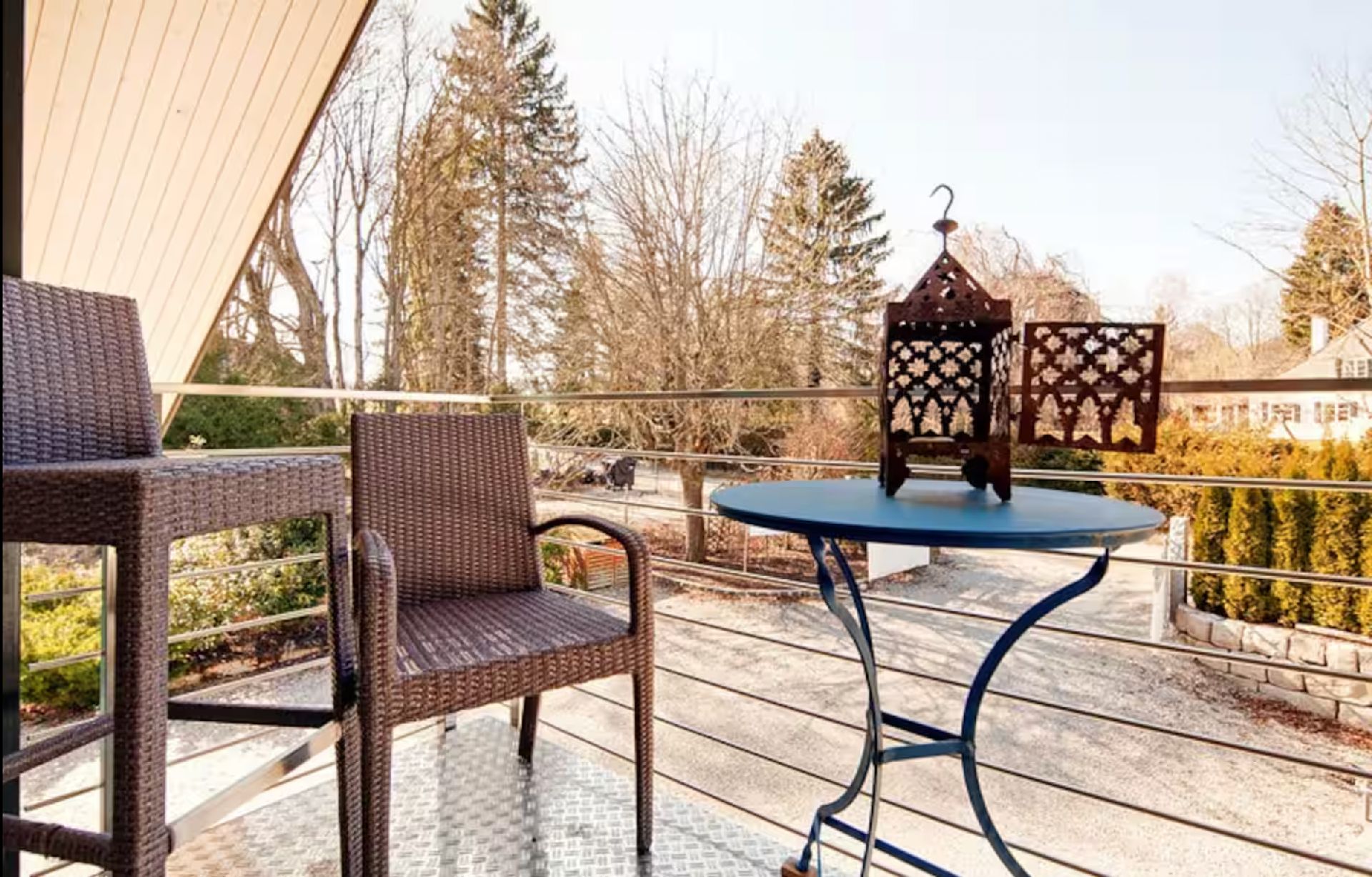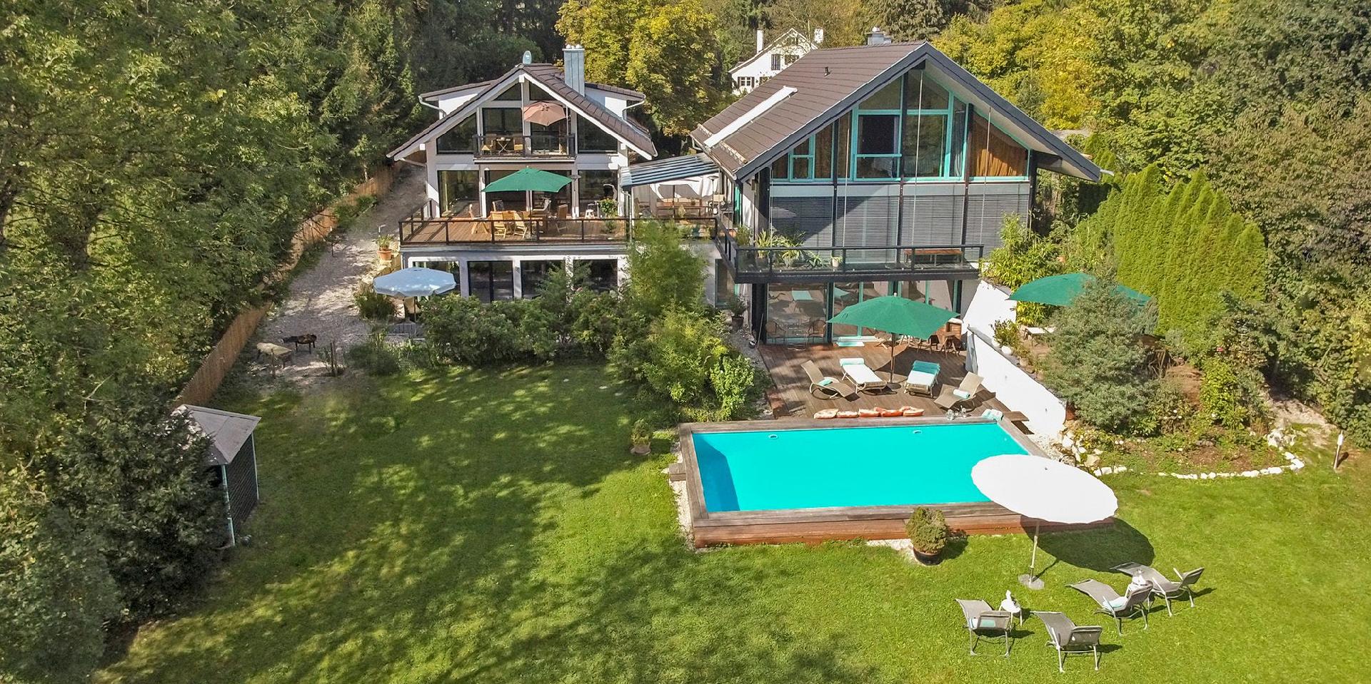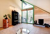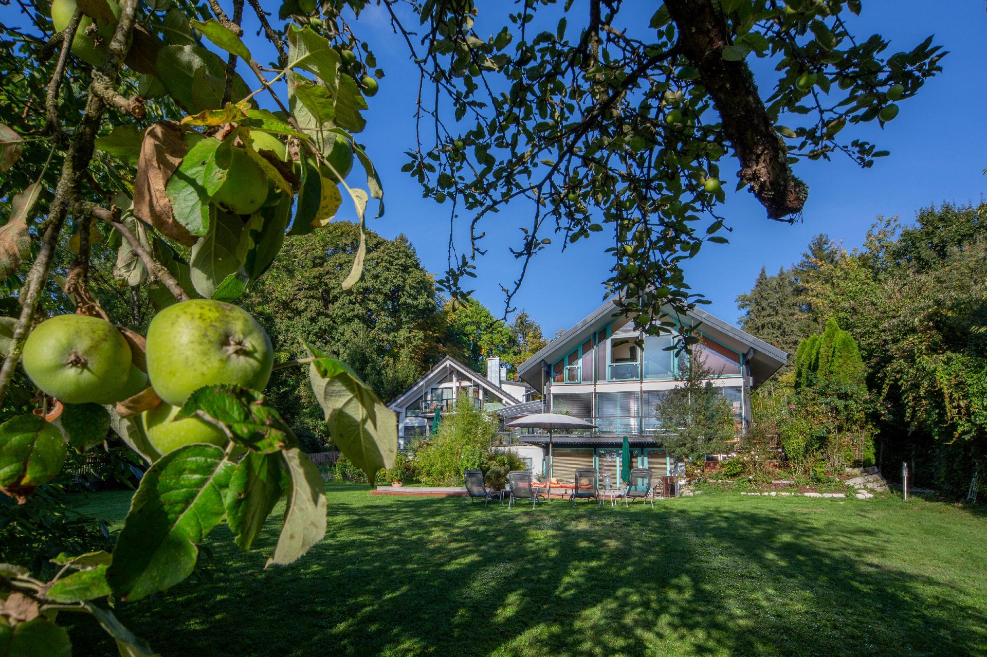 Die Ferienwohnung Immas Welt liegt über eine Außentreppe erreichbar im Dachgeschoss des in Holz und Glas errichteten Architektenhauses auf ca. 2.400 qm Grundstück im Ortsteil Utting-Holzhausen. Kurze Wege führen zum See mit Badeplatz und Liegewiese, zum Anlegeplatz der Ammersee-Schifffahrt, und in die freie Natur. Räume und Ausstattung: Viel Raumhöhe, Glas, Holz- und keramische Böden, kombiniert mit Weiß und frischen Farben, geben der Wohnung Loftcharakter. Sie bietet Offenheit und Weitläufigkeit mit freiem Blick ins Grüne. Die Wohnung besteht aus Wohnraum, zwei separaten Doppel-Schlafzimmern, einem Liegeplatz im Wohnbereich, Küche, Bad und Balkon. Die Dachschrägen bieten Platz als begehbaren Garderobenplatz. Zur Wohnung gehört ein eigener Gästeparkplatz. Die Ausstattung aller Räume erfüllt hohe Ansprüche an Materialqualität, Design, Funktionalität und Komfort. Moderne Unterhaltungselektronik, zeitgemäße Küchentechnik, ein Schreib-/Arbeitsplatz im Schlafzimmer, ein Waschplatz, Wanne und Dusche bei viel Raum und Licht im Badezimmer und farbfrische Accessoires ... machen Immas Welt zur Traumwohnung. Die 2 Schlafzimmer verfügen je über ein Kingsizebett, also könnten auch locker 3 Kinder darin übernachten. Falls es mehrere Gäste werden sollten, verfügen wir auch über mehrere Matratzen die im Wohnbereich aufgestellt werden können. Der Hof steht für Sie als Aussenbenutzung da. Entspannt können Sie dort sitzen und grillen. Immas Spa: Als Gast sind Sie willkommen im Day Spa auf 120 Quadratmetern, einer Tagesschönheitsfarm für Bodypflege, Kosmetik- und Wasserbehandlungen. WICHTIG: Falls Sie mit einem Hund anreisen teilen Sie bei Buchung bitte mit um welche Rasse und Geschlecht es sich handelt bzw. ob der Hund kastriert oder unkastriert ist. Eine Anreise ist nur mit umgänglichen Hunden möglich. Kurzbeschreibung Sonstiges : Nichtraucherhaus Kurzbeschreibung 1Anzahl Küchen : 1Schlafzimmer 1Sonstige Schlafzimmereinrichtung : großes Boxspringbett Schlafzimmer 2Sonstige Schlafzimmereinrichtung : großes Boxspringbett Umgebung Leihmöglichkeiten : Bootsverleih, Fahrradverleih Sportmöglichkeiten in der Umgebung : Angeln, Basketball, Kanu, Klettern, Mountainbiking, Radtouren, Reitplatz/Reitmöglichkeiten, Rudern, Segeln, Surfen, Wasserski Garten und Aussenanlagen Gartenausstattung : Grill