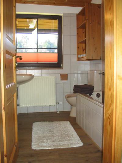 Unser Haus bietet Platz für bis zu 6 Personen (6 Schlafplätze). Das Haus ist in Hanglage gebaut. Über den auf Straßenhöhe gelegenen Eingang gelangt man in die 2 zwei Schlafräume,ausgestattet mit jeweils einem Doppelbett und jeweils mit einem geräumigen Kleiderschrank. Auf dieser Etage liegt auch das Tageslicht-Bad mit WC, Wanne und Waschbecken. Dort liegen ein Fön und Vergrößerungsspiegel für Sie bereit. Weitere zwei Betten gibt es im ausgebauten Spitzboden, den man vom Flur aus über eine Raumspartreppe erreicht.Für Erwachsene ist die Stehhöhe nur in Giebelhöhe gegeben, weshalb sich diese Schlafgelegenheiten vorallem für Kinder und Jugendliche eignet. Für Kinder unter 5 Jahren ist die Nutzung der Raumspartreppe nicht geeignet.