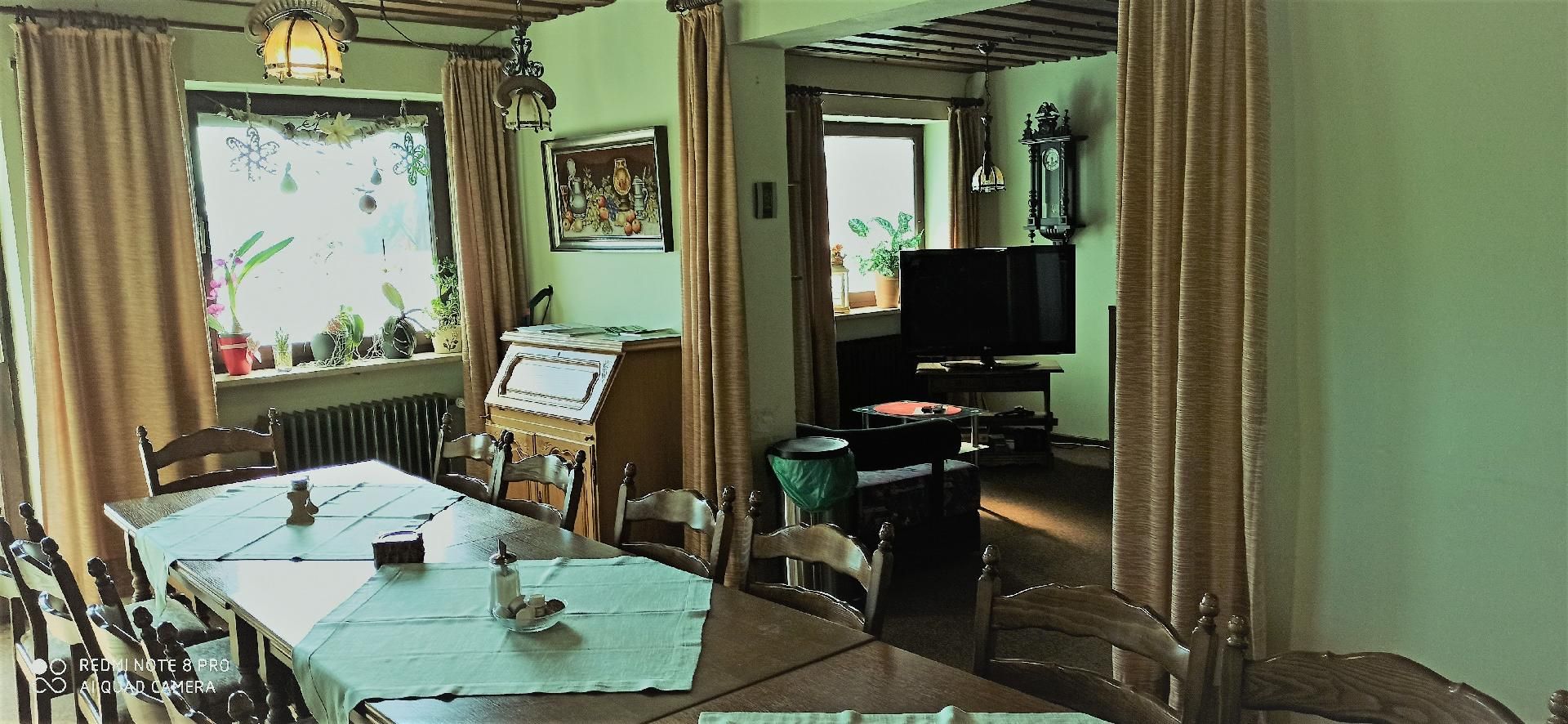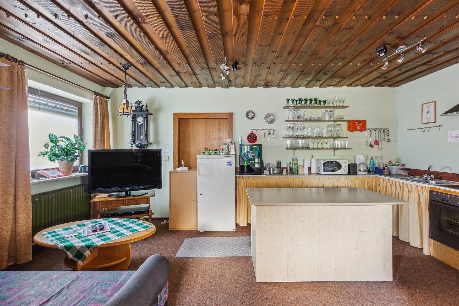 Ferienhaus: Auf in den Urlaub nach Neukirchen b-Hl.Blut.Mit diesem wohnlichen Ferienhaus erwartet Sie eine Unterkunft, mit der Sie Ihren Urlaub ganz entspannt angehen können. Das geräumige Ferienhaus Schamberger, befindet sich im Bergdorf Rittsteig ( 720 m ÜNN ).Mit wunderbaren Talblick auf Neukirchen b.Hl. Blut und auf den Hausberg Hoher Bogen mit Bergbahn. Unsere Unterkunft beherbergt bis zu 17 Erwachsene und 6 Kinder. Auf 300 qm Wohnfläche befinden sich 5 Doppelzimmer, ein Dreibettzimmer und zwei Familienzimmer ( DZ mit Kinderzimmer für jeweils drei Kinder ). Alle Zimmer mit Dusche / Wanne, WC, Sat-TV und Balkon. Biomasse - Heizung ( Hackschnitzel ).Im Erdgeschoß befindet sich ein großer Aufenthaltsraum mit voll ausgestatteter Küche. Pizza- Lieferdienst- in Neukirchen b.Hl.Blut Getränkeautomat befindet sich im Flur der Pension. Ein privater Garten mit Liegewiese, Grillplatz mit Lagerfeuerstelle ( Feuerholz gratis ), Gartenmöbeln, Kinderspielgeräten (Schaukel, Rutsche,) gehören ebenfalls zum Ferienhaus. Die Vermieter befinden sich im Nebenhaus, so ist immer jemand für Rückfragen da. Die Betten sind bei Ankunft bereits fertig gemacht und Handtücher liegen im Bad bereit. Zu jeder Jahreszeit bietet die Umgebung zahlreiche Sport- und Freizeitmöglichkeiten. Das Haus eignet sich sehr gut für Familientreffen / Großfamilien / Wohngemeinschaften und Gruppen. Liebe Mieter, bei Buchungen mit Kindern können bestimmte Altersklassen kostenlos buchen bzw. kann es eine Reduzierung des Mietpreises geben. Bei Buchungen mit Kindern von 0 - 3 Jahren zahlen diese nichts, wenn Sie die Kinderbettchen mitbringen. Für Kinder von 4 - 8 Jahren werden nur 50% des normalen Mietpreises berechnet. Um Ihnen diese mögliche Reduzierung zu gewähren bitten wir Sie immer bei einer Buchung die Altersangaben aller Kinder anzugeben, damit die Buchung schneller bearbeitet und beantwortet werden kann.