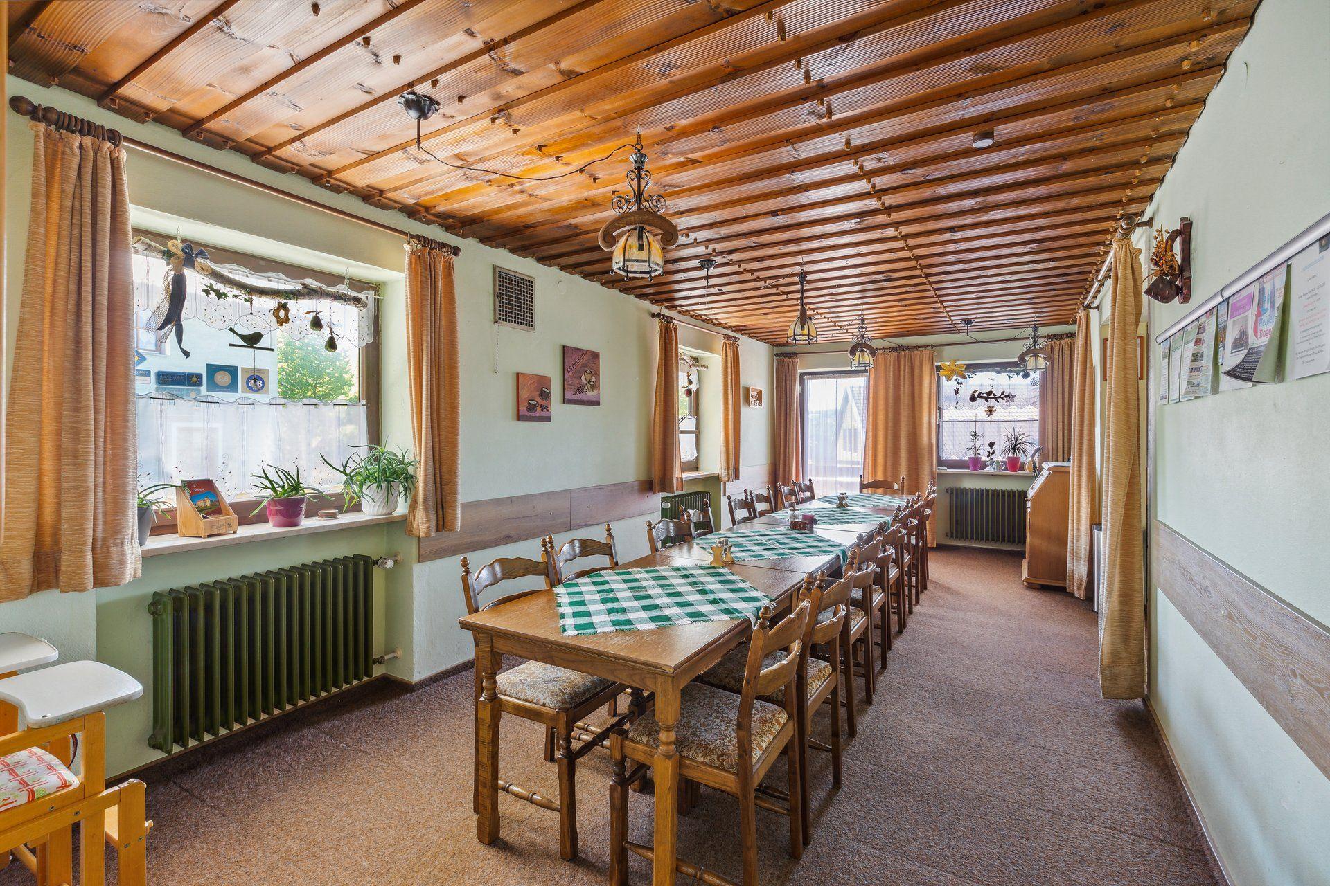 Das Haus mit 8 Doppelzimmer ( Doppelbett + Bettcouch ) und 2 Familienzimmer ( Doppelzimmer mit Durchgangstür zum Kinderzimmer 2 Erw. bis 3 Kinder ), hat im Erdgeschoß einen großen Aufenthaltsraum und eine Küche. Münz- Waschmaschine und Trockner im Haus. .Getränkeautomat befindet sich im Flur der Pension. Küche: ( 4 Platten E-Herd mit Backrohr, Geschirrspüler, Microwelle, Kaffeemaschinen, Wasserkocher, Toaster, Gläser, Geschirr u. Bestecke ).