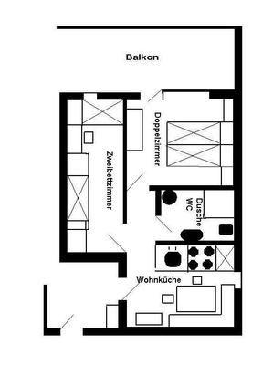 Schlafmöglichkeiten: Anzahl Doppelbetten (1,80m Breite): 1; Anzahl Einzelbetten: 2
