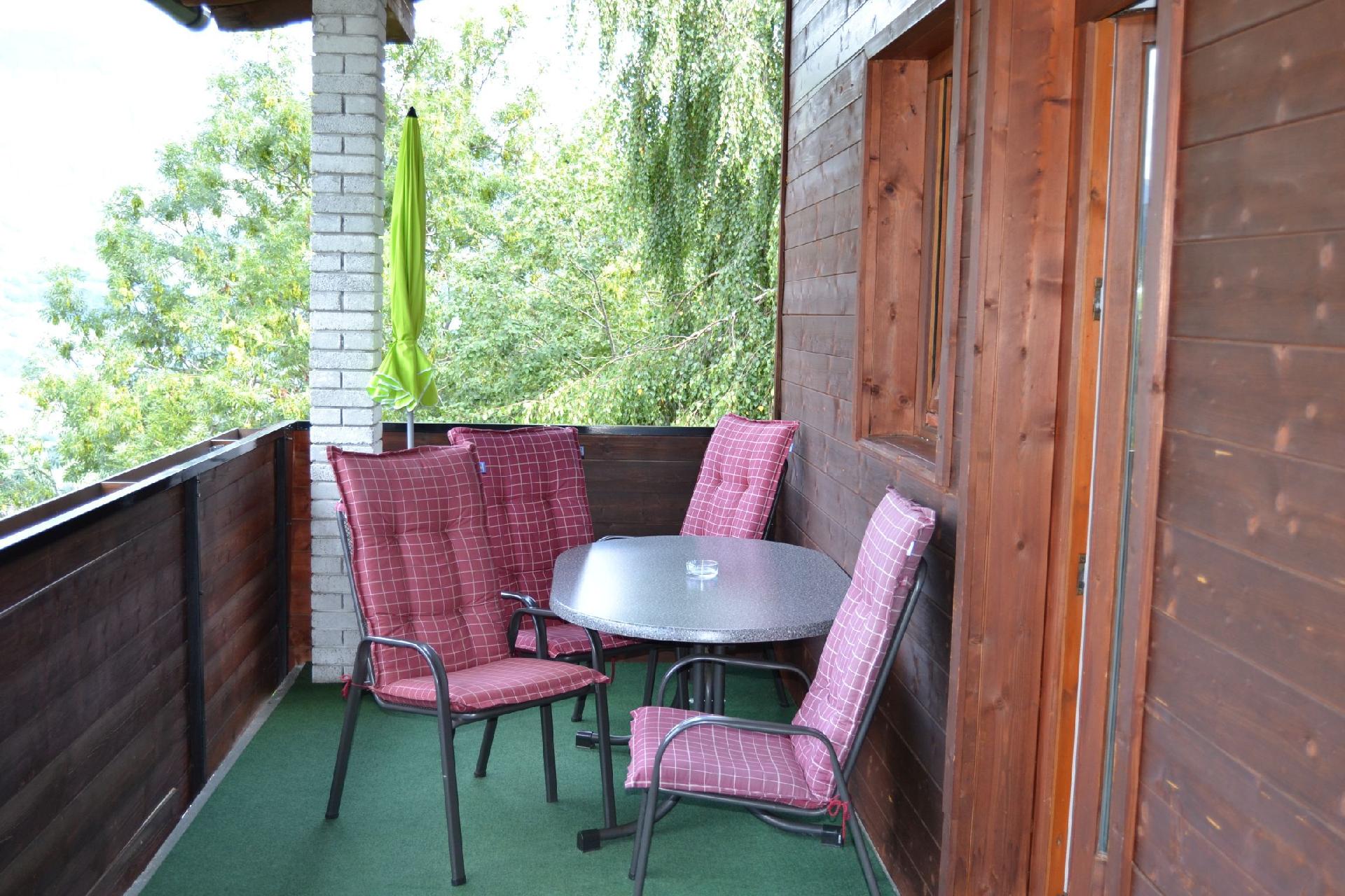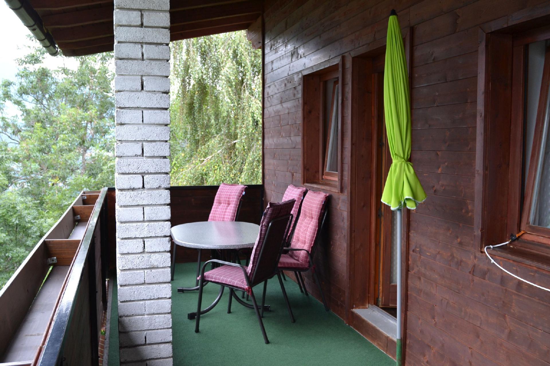 Der Außenbereich der Ferienwohnung lädt mit einem Balkon dazu ein, die schöne Aussicht in vollständigen Zügen zu genießen und den Tag in Ruhe ausklingen zu lassen. Für Gäste, die mit dem Auto anreisen, steht auf der Hofanlage ein Parkplatz zur Verfügung, was den Urlaub noch bequemer macht.