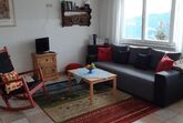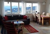 Die Wohnung ist etwa 65qm groß. Der Boden ist gefliest, im Couchbereich liegt ein Teppich.Grosses Panoramafenster und ein toller Blick auch vom Essbereich.Bad mit geräumiger Dusche.Schlafzimmer mit 2 Betten.