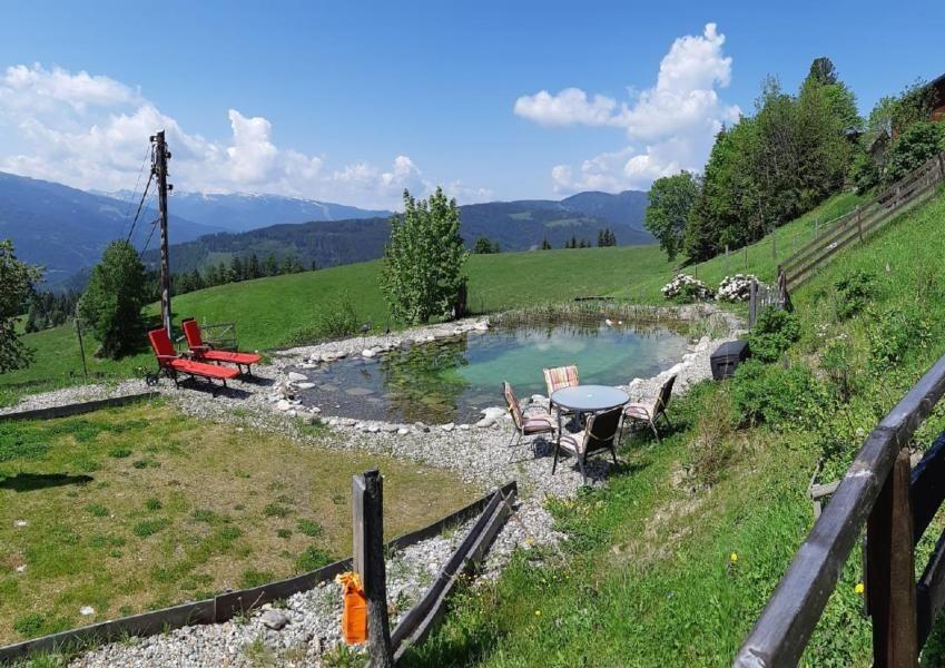 Großer Garten mit Grillplatz, Sonnenliegen und tollem Ausblick.Eigener Naturschwimmteich.
