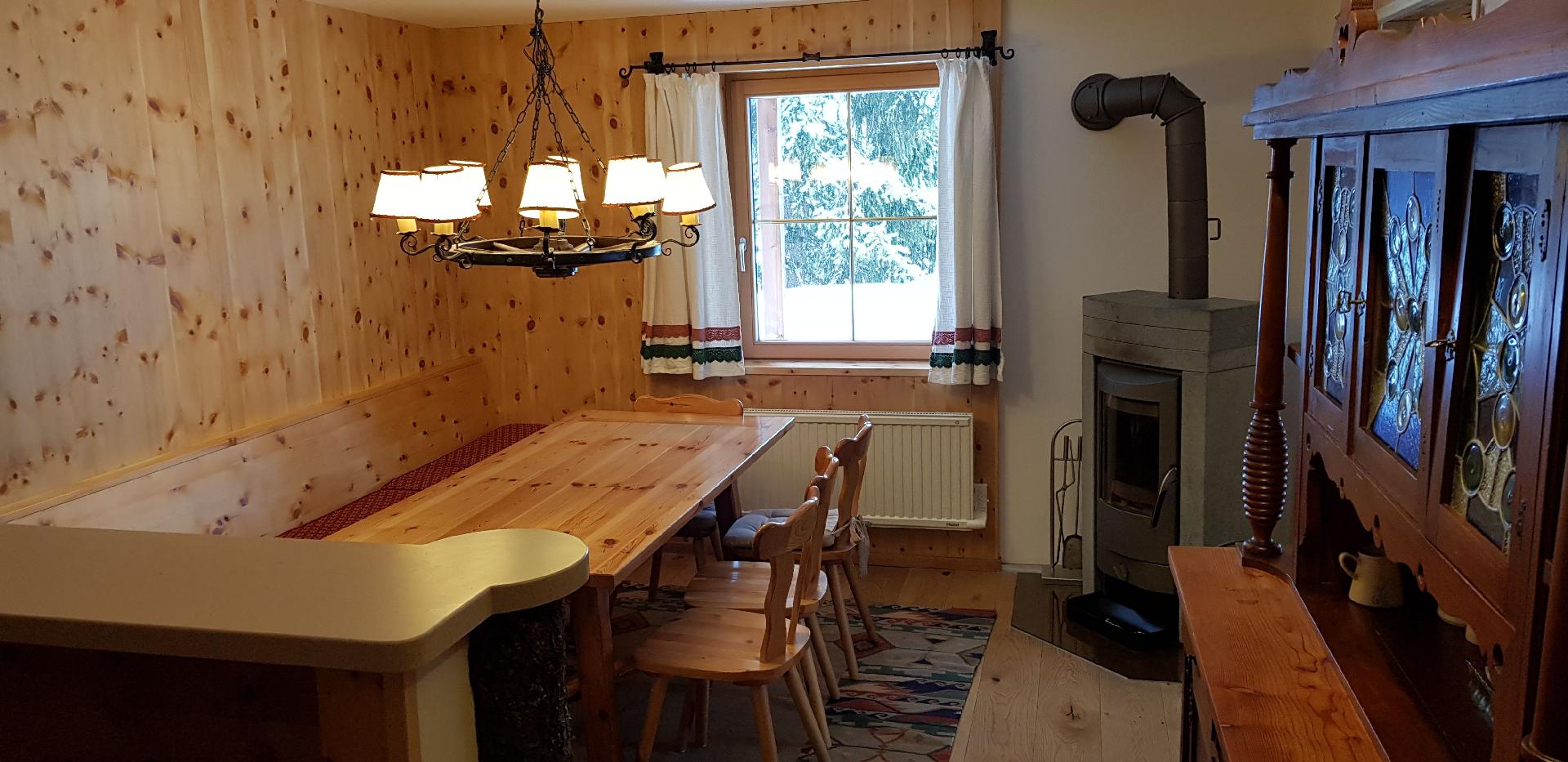 In der ZIRBENHUETTE stehen zwei Kaminöfen. In der Wohnung Arnika steht ein Kaminofen.