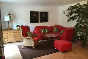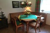 Die Ferienwohnung hat zwei Schlafzimmer mit je einem Doppelbett (Breite 1,80 m), Nachttischen, Kommode und Kleiderschrank. Ein großes Wohn-Esszimmer mit Eckbank, Tisch, Stühle sowie eine Landhausküche mit E-Nostalgie-Herd und Cerankochfeld, Polsterecke, Couchtisch, Ohrensessel mit Hocker, antiker Bauernschrank und eine antike Truhe stehen den Gästen zur Verfügung. Des Weiteren verfügt die Ferienwohnung über ein voll ausgestattetes Badezimmer mit Waschbecken, Dusche, Toilette und einer separaten Toilette mit Waschbecken.
