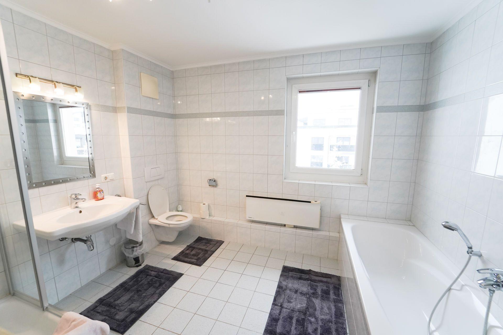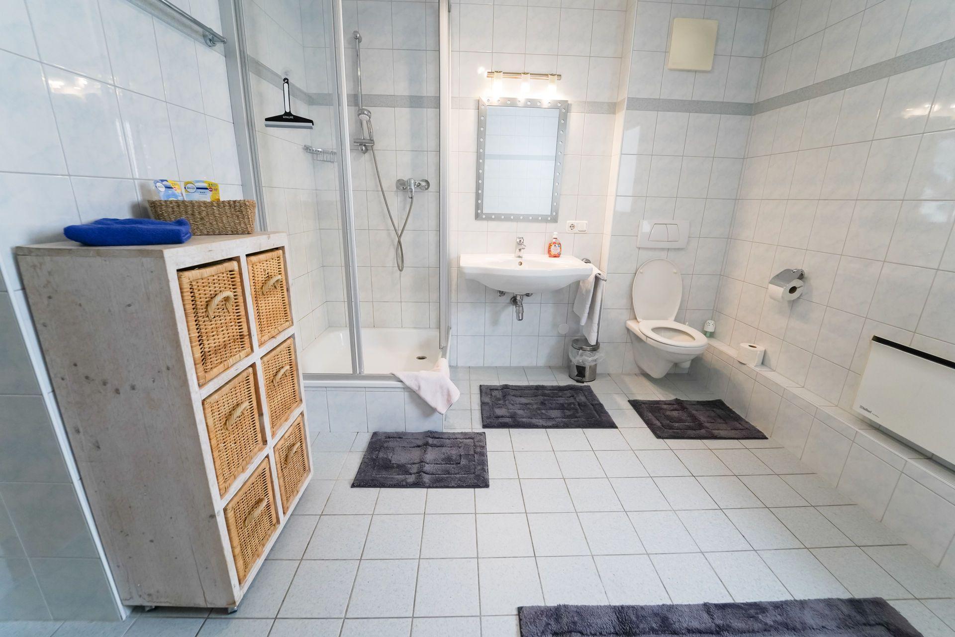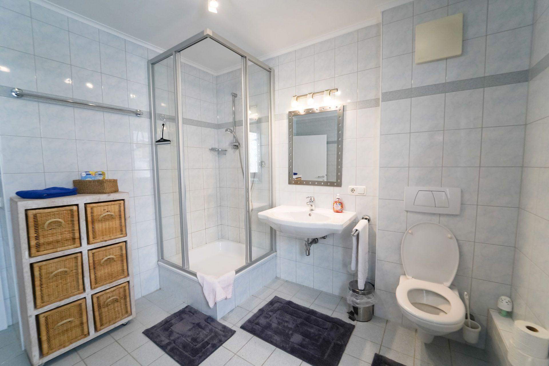 Bad/WC: Badewanne; Dusche; Dusche; Föhn; Föhn; Toilette; Toilette; Waschbecken; Waschbecken