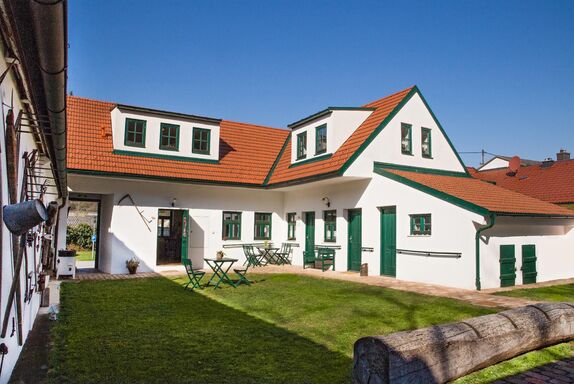 Mit viel Liebe zum Details wurde das ursprünglich 1930 errichtete typische Weinviertel Haus im Jahre 2012 vorbildlich saniert und der Dachboden ausgebaut. Auf ca. 180m² wurde das Haus modern im Landhausstil mit urigen Elementen eingerichtet. Im Erdgeschoss befinden sich drei lichtdurchflutete Schlafzimmer mit jeweils einem Doppelbett und Verstaumöglichkeiten für Ihre Garderobe. Zwei von den Zimmern führen direkt in den Innenhof. Zwei weitere helle Schlafzimmer im Obergeschoss runden das Angebot ab. Vier moderne Badezimmer mit Dusche, Fön und WC lassen ebenfalls keine Wünsche offen. Das besondere Highlight ist das Badezimmer, welches sich im ehemaligen Saustall befindet. Lassen Sie sich mit einem Waschtrog und Waschrumpler in längst vergangene Zeiten zurück versetzen. Im Wirtschaftsraum stehen Ihnen eine Waschmaschine und ein Trockner zur Verfügung. Treffpunkt im Haus ist schon beim Frühstück die komplett ausgestattete Küche im Landhausstil. Neben allen wichtigen Küchenutensilien finden Sie hier weiterhin noch eine Spülmaschine, ein Cerankochfeld mit Backofen, eine Kaffeemaschine, einen Toaster, einen Wasserkocher u.v.m. vor. Der große Esstisch lädt nach dem Zubereiten und Kochen zum gemeinsamen Speisen oder geselligem Beisammensein ein.