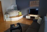 Wohnen: Doppelsofa; Kaminofen; Satelliten-TV