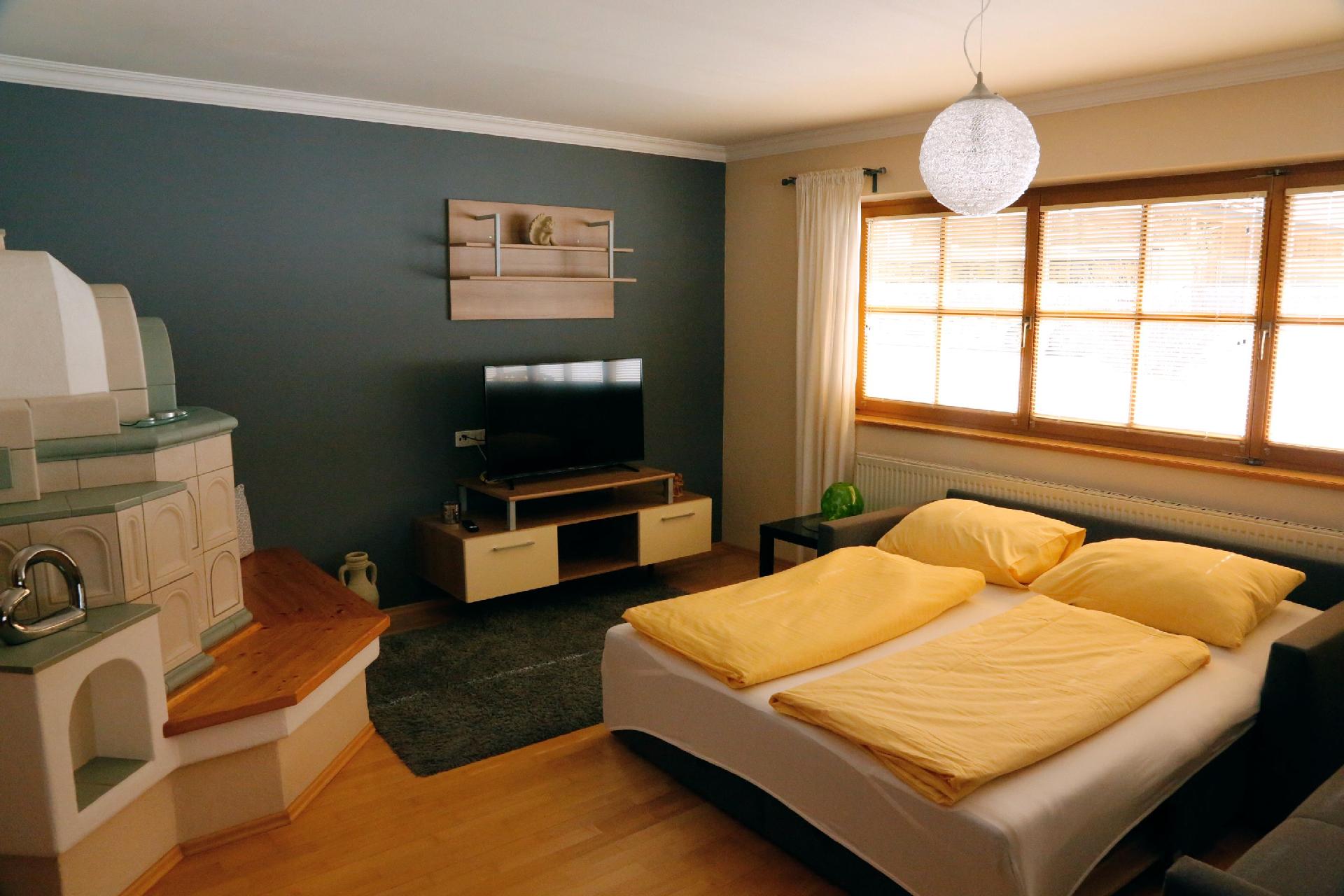 Im Erdgeschoß befindet sich 1 Apartment für maximal 6 Personen mit 2 Schlafzimmern, 1 Wohn-/Schlafraum, 1 Bad mit Dusche und Badewanne, 1 voll ausgestatteten Küche, 1 Terrasse sowie Kabel-TV und Internetzugang.