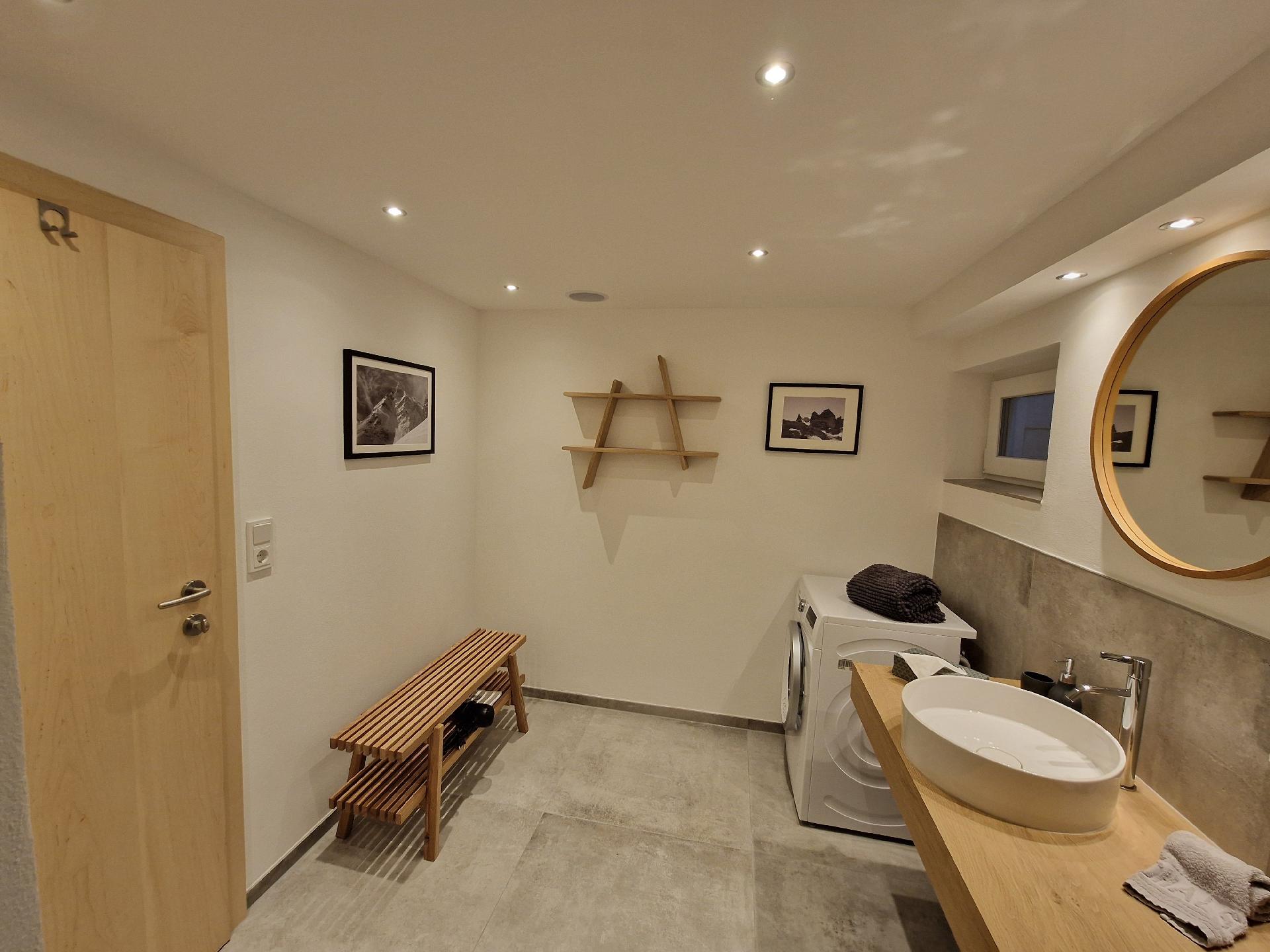 Der Außenbereich besticht durch zwei große Terrassen, von denen aus Sie unterschiedliche, aber gleichermaßen herrliche Ausblicke genießen können. Die direkte Umgebung des Hauses ist ein Paradies für Naturliebhaber und Outdoor-Enthusiasten. Bei guten Schneeverhältnissen ist sogar die Abfahrt direkt bis zum Haus möglich, was echten Ski-in/Ski-out-Komfort bedeutet.