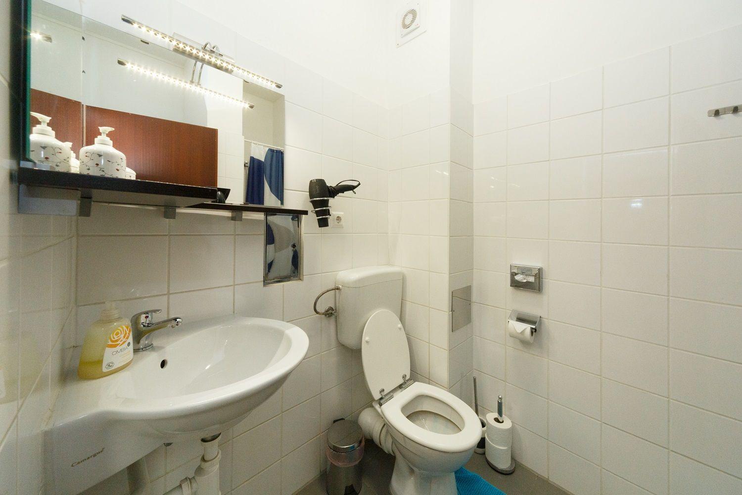 Diese Wohnung liegt im zweiten Stock straßenseitig und bietet auf 47m² Platz für zwei Personen. Der Wohnbereich ist mit Parkett, der Sanitärbereich mit einem Fliesenboden ausgestattet. Im Vorraum gibt es eine Garderobe mit Ablagemöglichkeit. Der Wohnraum mit integrierter Küche bietet Ihnen ein Sofa sowei ein Esstisch mit zwei Stühlen und einen Fernseher. Die offene Küchenzeile ist komplett mit Herd, Kapsel Kaffeemaschine, Mikrowelle, Spüle sowie Kühlschrank ausgestattet. Im Badezimmer haben Sie eine Dusche und Waschbecken, einen Haartrockner sowie Bade- und Handtücher und eine Toilette. In der Wohnung gibt es ein Schlafzimmer mit einem Boxspringbett, einen Kleiderschrank und Ablagemöglichkeiten.