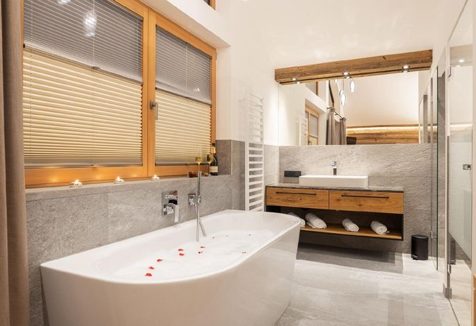 Im Inneren des Chalets erwartet Sie eine moderne Innenausstattung, die keine Wünsche offen lässt. Drei stilvolle Schlafzimmer, teils mit eigenem Badezimmer ausgestattet, bieten ausreichend Privatsphäre für bis zu sechs Personen. Ein offener Wohn- und Essbereich, bereichert durch einen einladenden Kamin, schafft die perfekte Atmosphäre für gemütliche Abende. Die moderne Designküche, ausgestattet mit Cerankochfeld, Induktionsherd, Kaffeemaschine und Spülmaschine, lädt zum gemeinsamen Kochen und Verweilen ein. Eine fußbodenbeheizte Waschküche mit gemeinschaftlich nutzbarer Waschmaschine und Wäschetrockner rundet das Angebot ab.