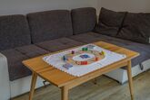 Die Wohnung mit ca. 53 m2 befindet sich im Erdgeschoß unseres Hauses Sonnberg 82 und hat eine komplett eingerichtete Küche mit Vierplatten-E-Herd und Backofen, Kühlschrank mit Gefrierfach, Kaffeemaschine, Spülmaschine, Wasserkocher, Geschirr, Besteck, etc.. Eine Frühstücksbar, Esstisch mit Eckbank und Polsterstühlen stehen zur Verfügung. Im Wohnzimmer mit Ausgang zur großen Sonnenterrasse, befindet sich eine Sitzgruppe mit Ausziehcouch - als Doppelbett nutzbar, Tischchen, Schrank sowie der Farbfernseher mit Kabelanschluss. Die Wohnung verfügt über ein Schlafzimmer mit Doppelbett - 200 cm lang und Einzelbett 200 cm lang, ein kleines Badezimmer mit Wanne, Waschbecken und Handtuchtrockner, außerdem ist ein separates WC mit Waschbecken u. Alibert vorhanden. Bettwäsche, Hand- und Geschirrtücher etc. werden von uns beigestellt. Abstellmöglichkeiten für Fahrräder, Schi, etc. sind vorhanden. WLAN, PKW-Parkplätze sind ausreichend vorhanden