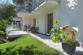 Privatterrasse, großer Garten zur Mitbenutzung.