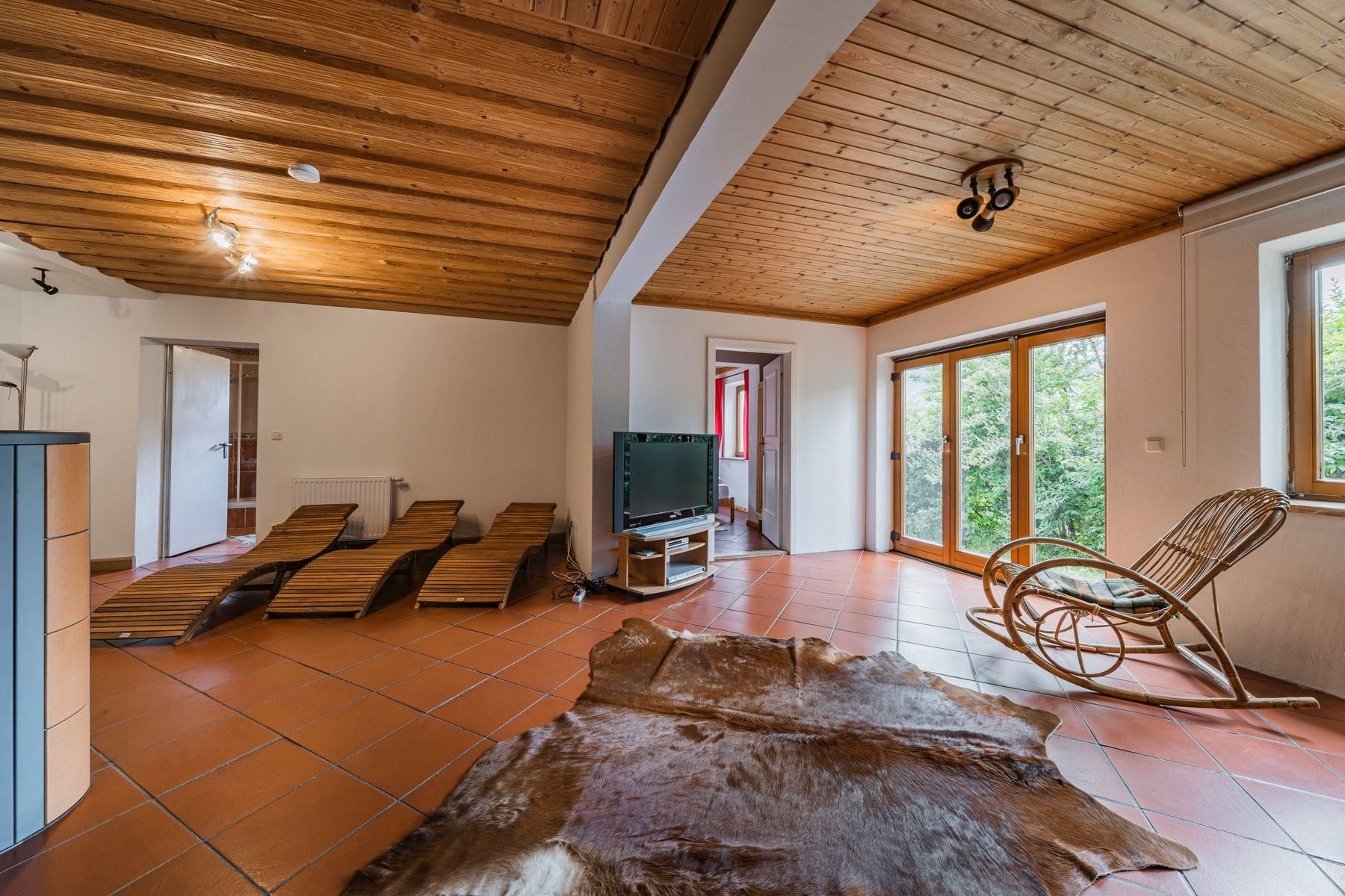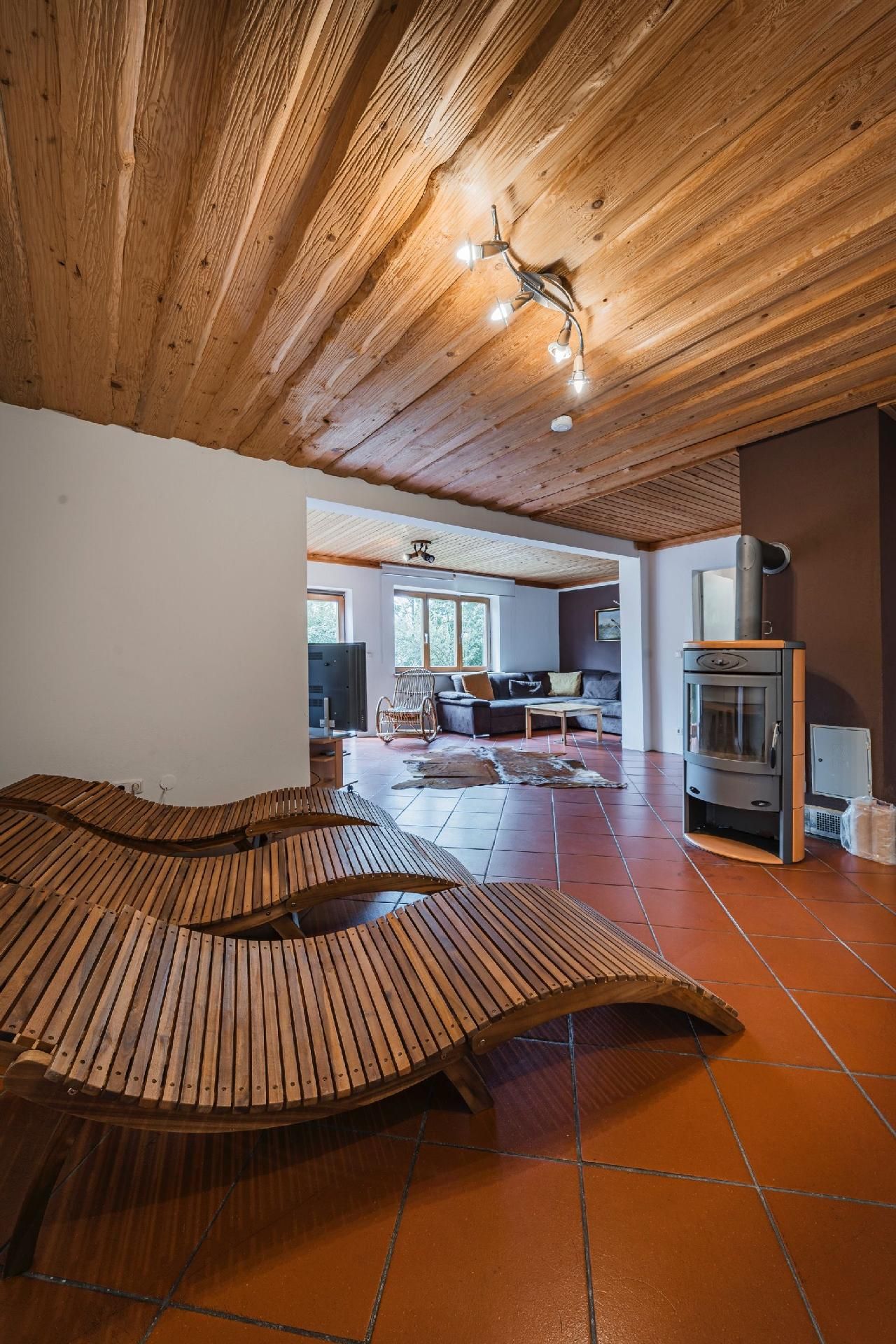 Der Außenbereich dieses einzigartigen Ferienhauses ist ein wahrer Rückzugsort. Eine großzügige Terrasse und ein Garten zur alleinigen Nutzung laden zum Entspannen und Genießen ein. Hier können Sie in vollkommener Privatsphäre die frische Luft und die Ruhe der umliegenden Natur auf sich wirken lassen.